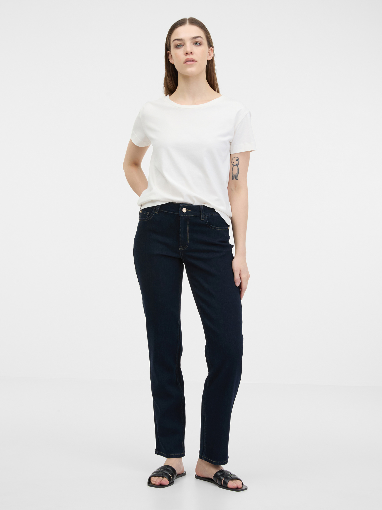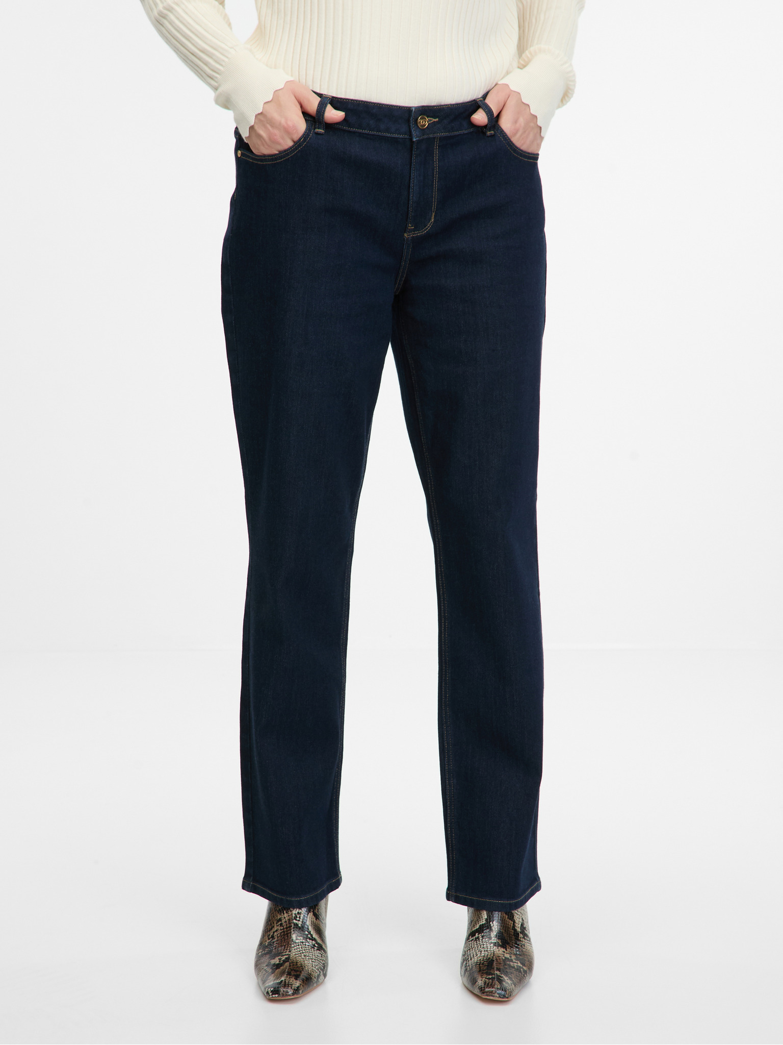 Tamnoplave ženske traperice ravnog kroja ORSAY
