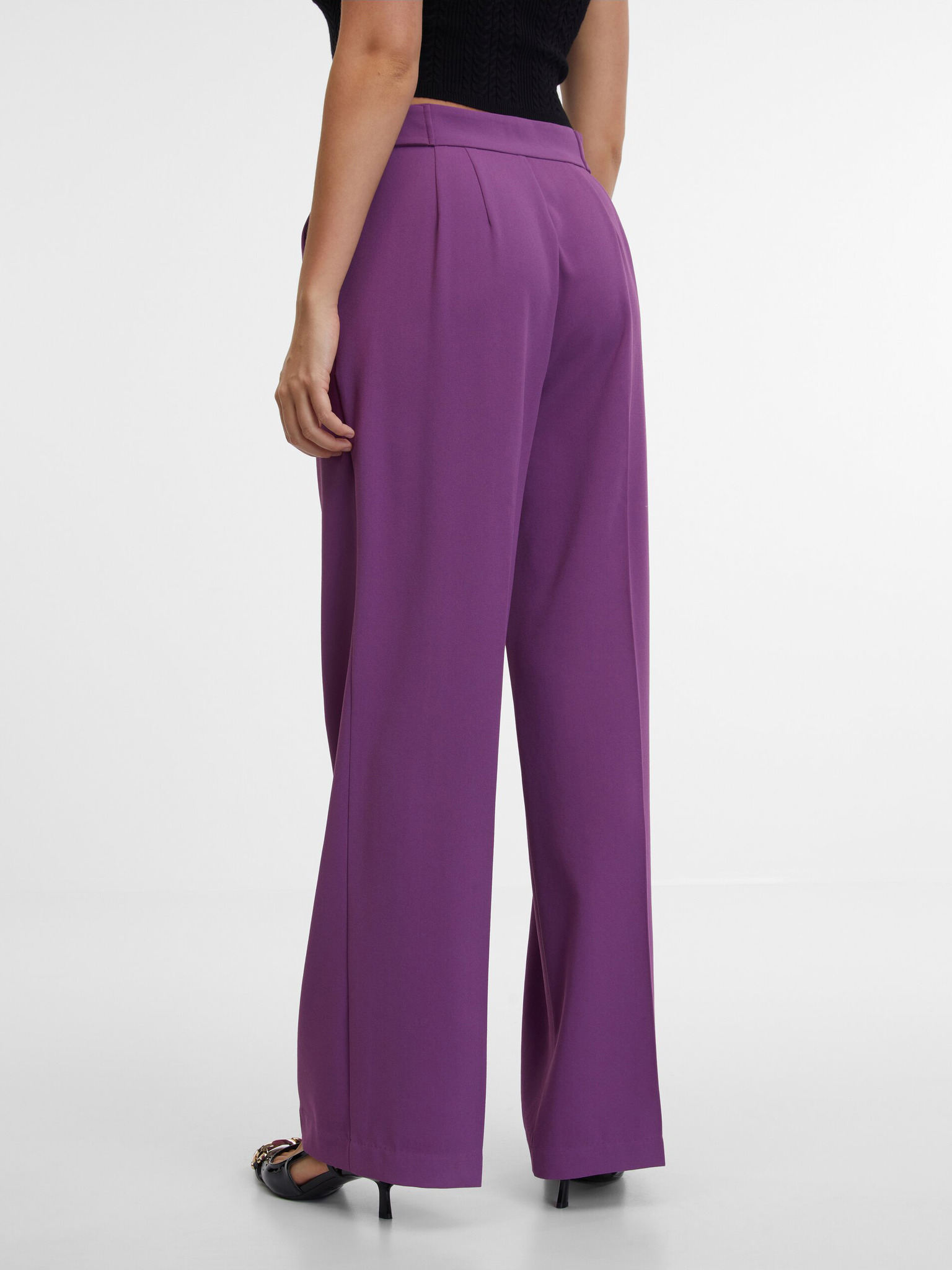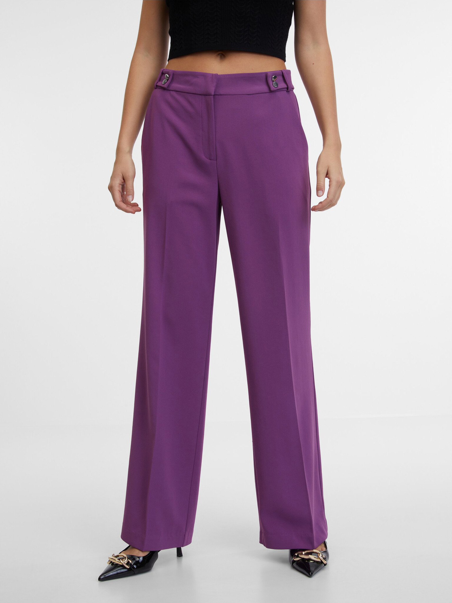 Ljubičaste hlače s širokim nogavicama i pojasom Moodo