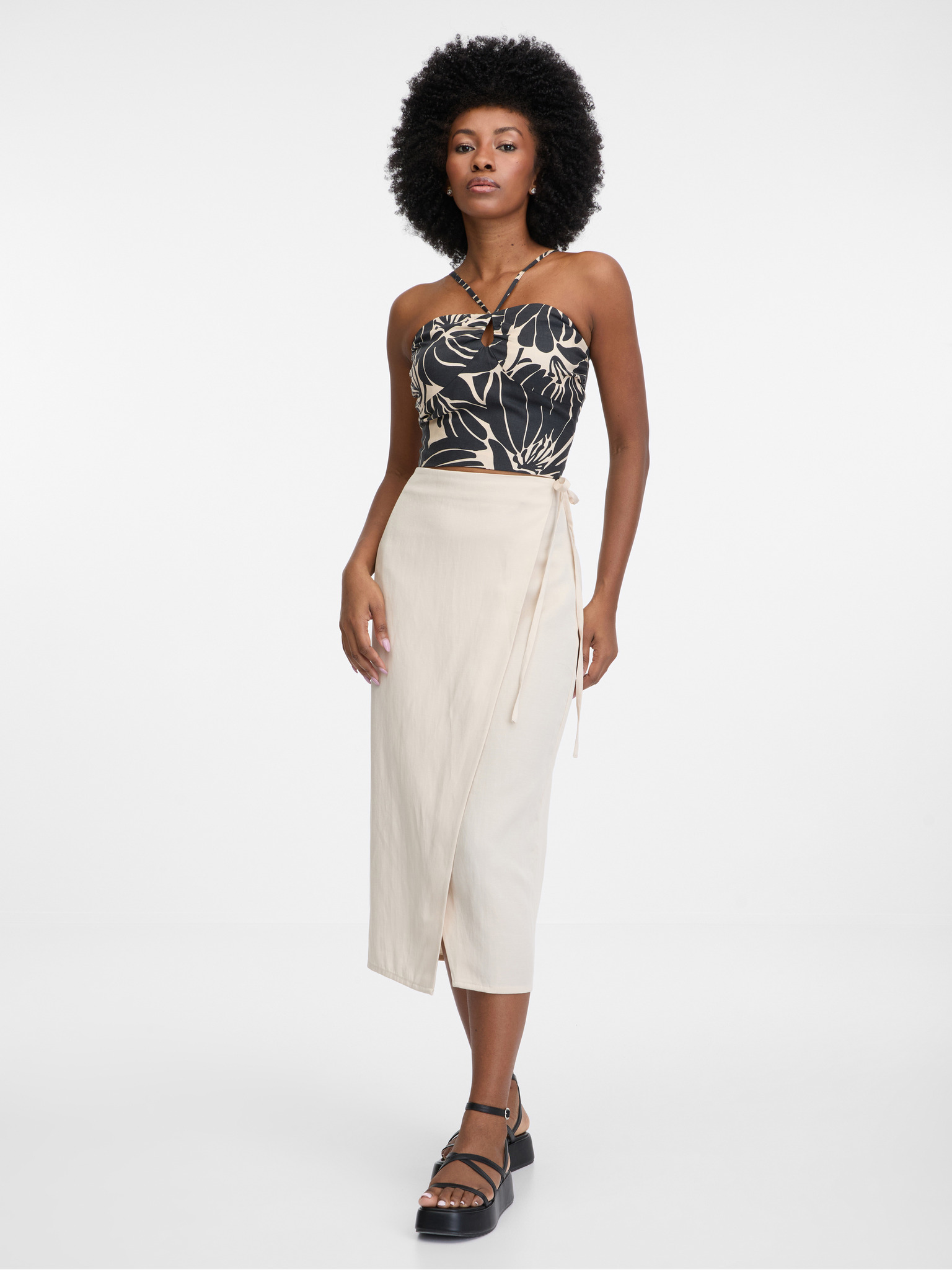 Bež-crna ženska uska čipkasta suknja ORSAY