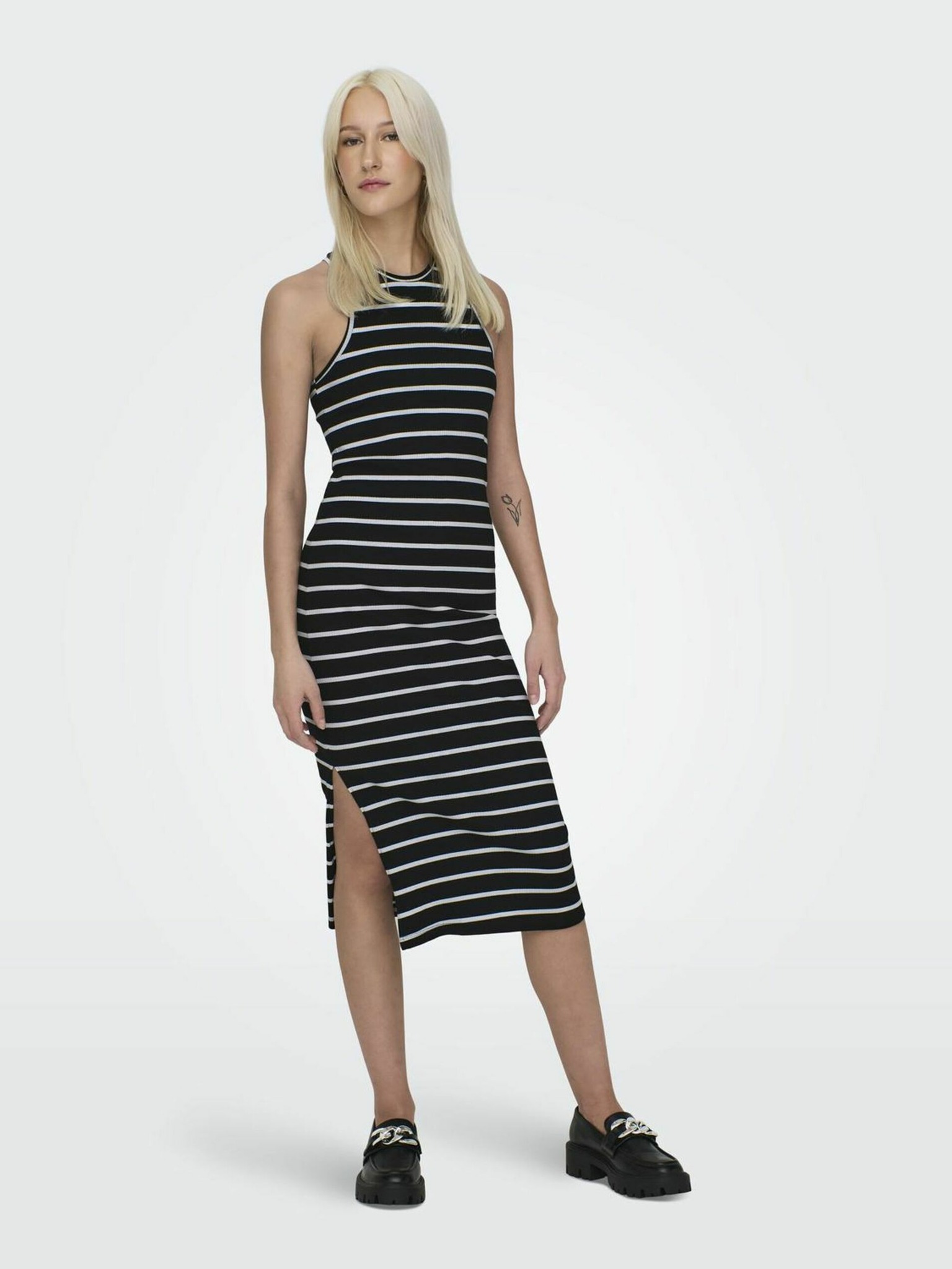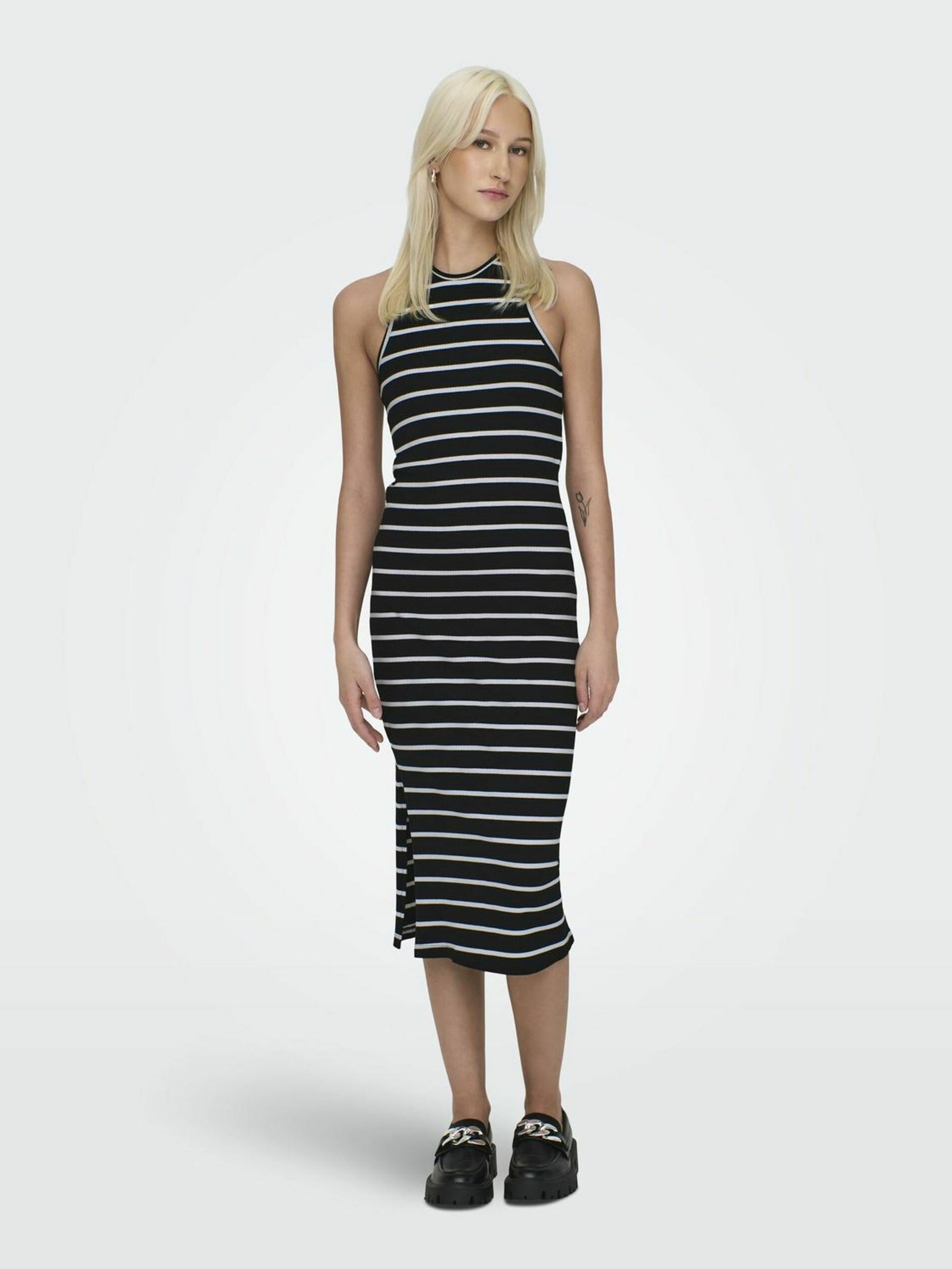 Bijelo-crna ženska haljina na pruge SAM73 Sagitta