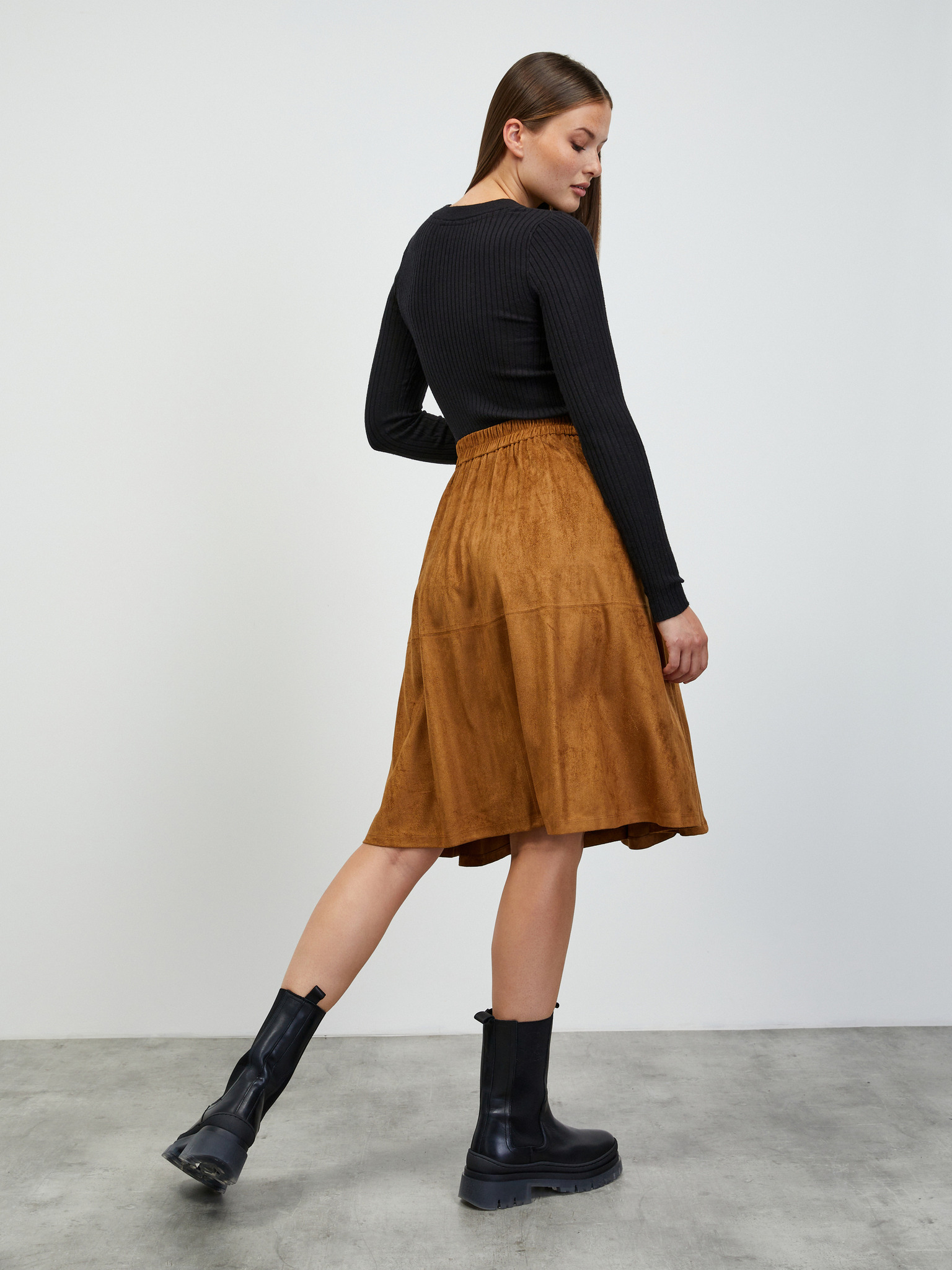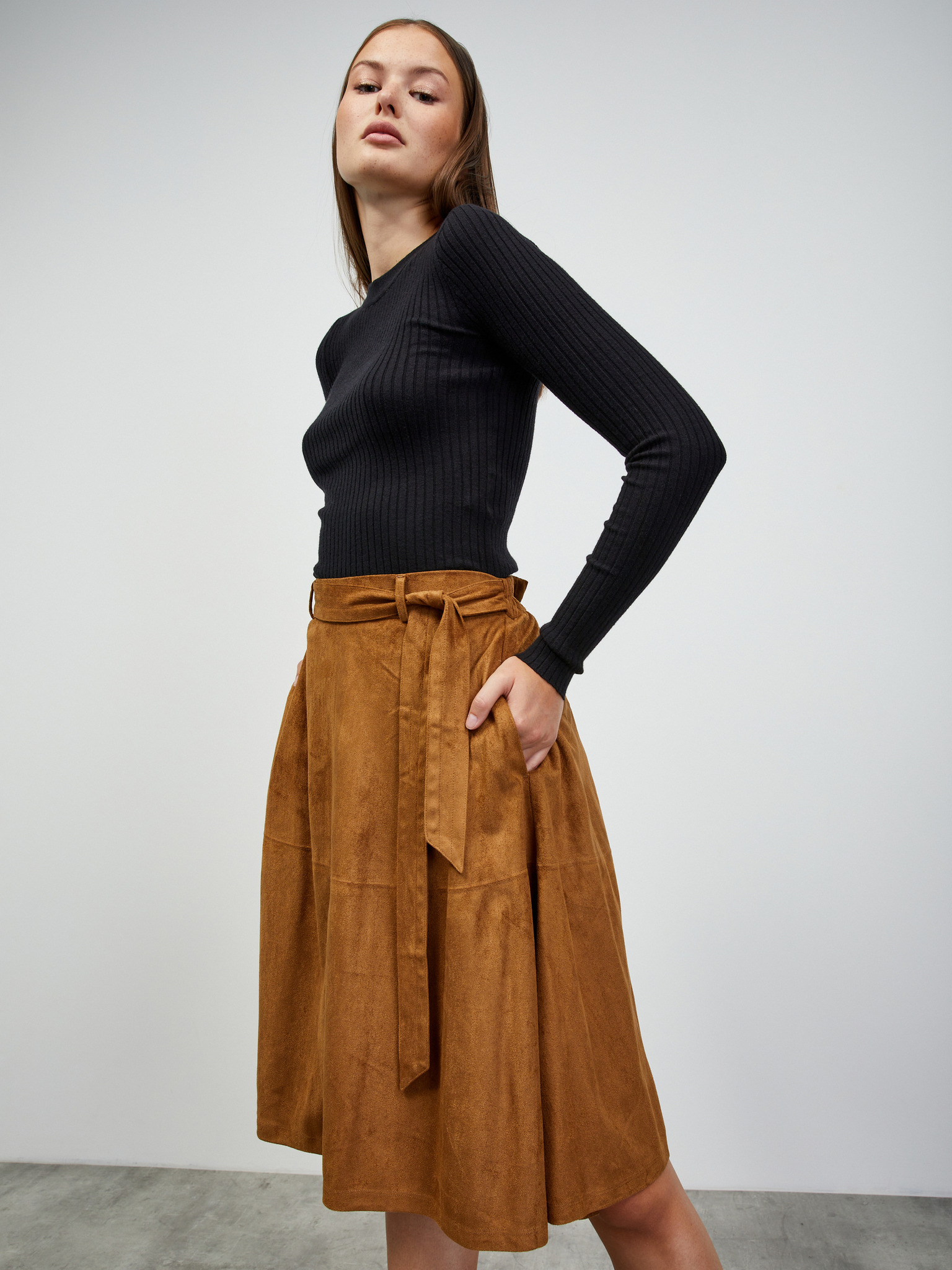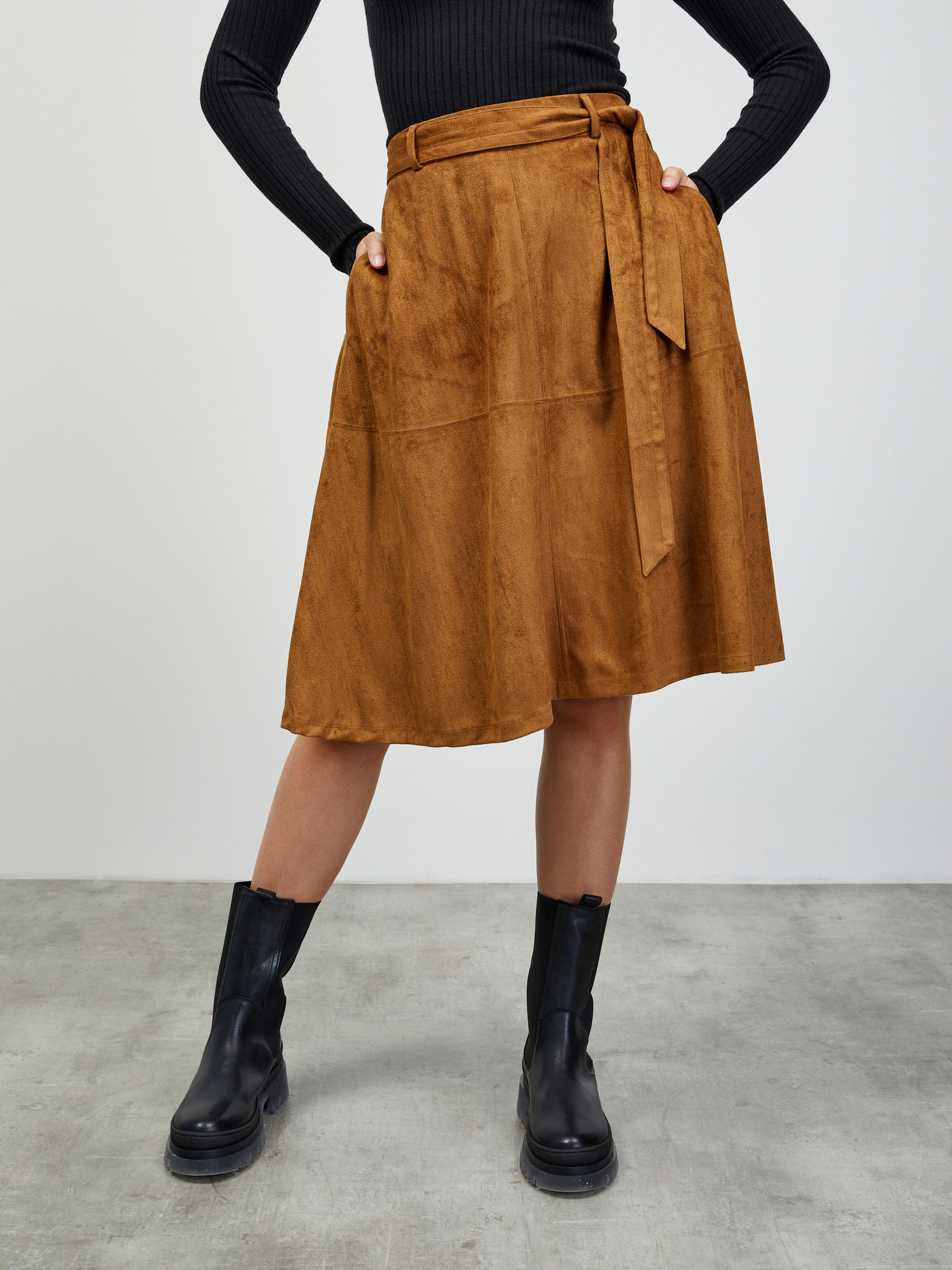 Smeđa ženska suknja od brušene kože ORSAY
