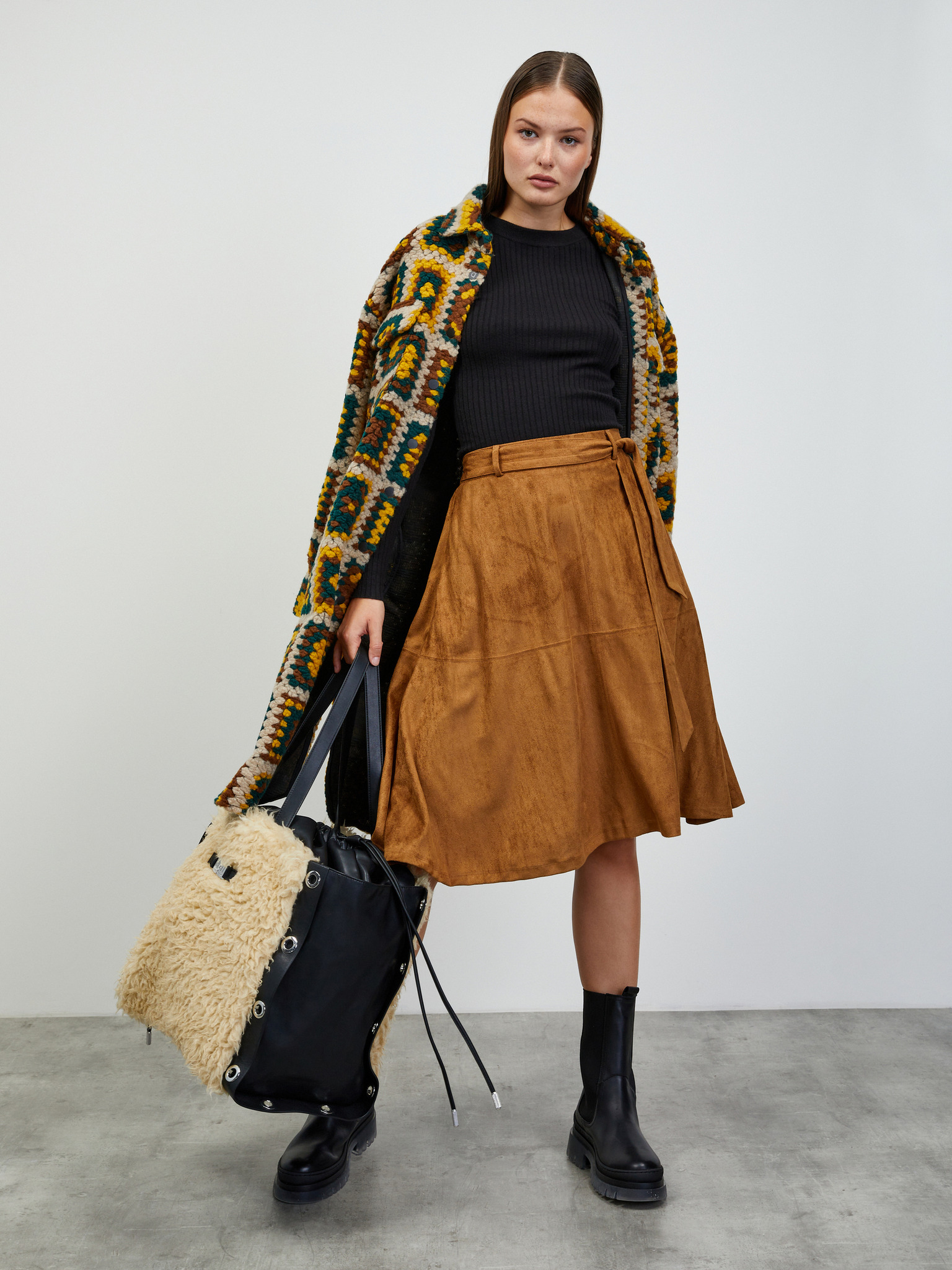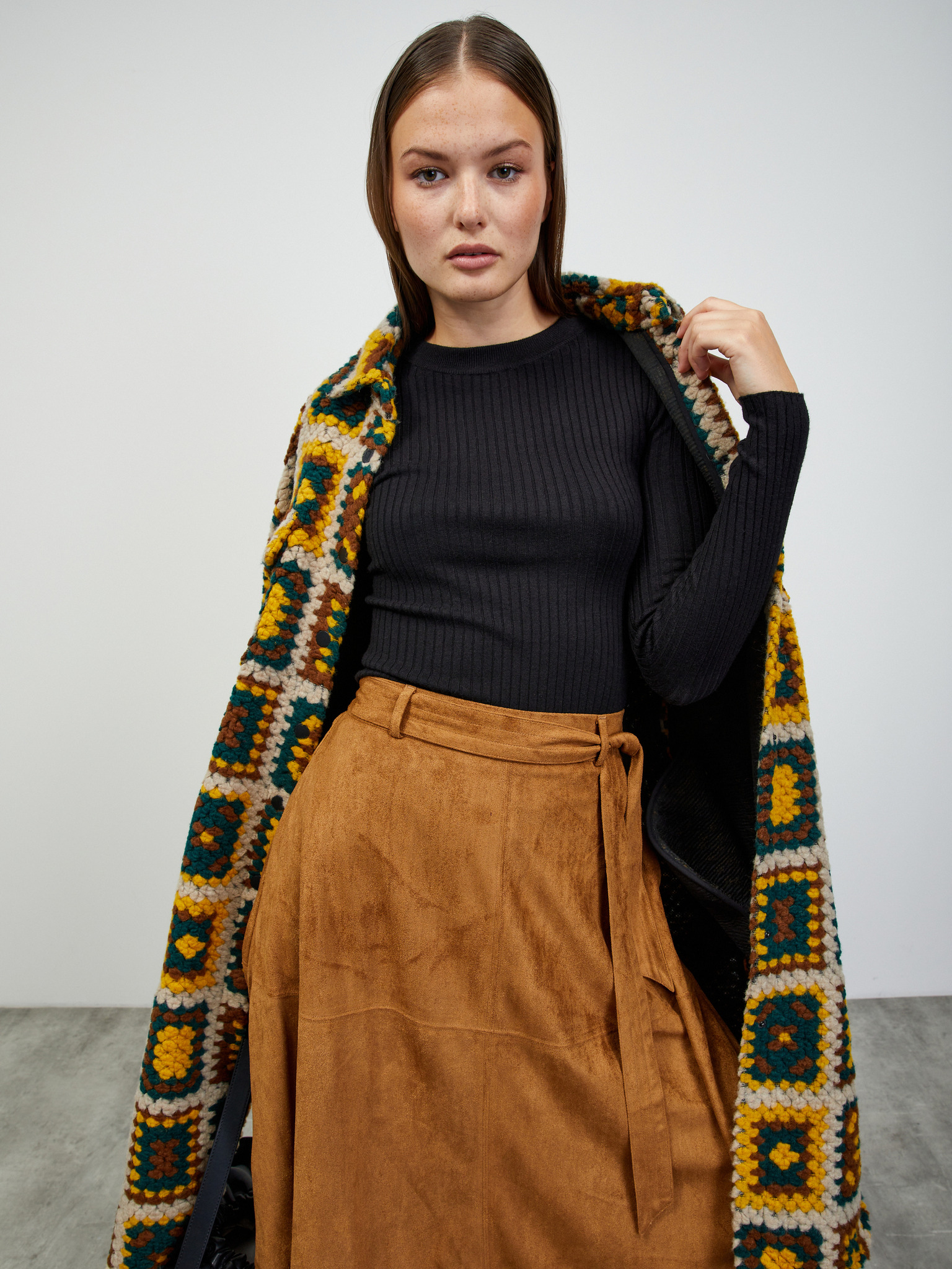 Pletena smeđa suknja Moodo