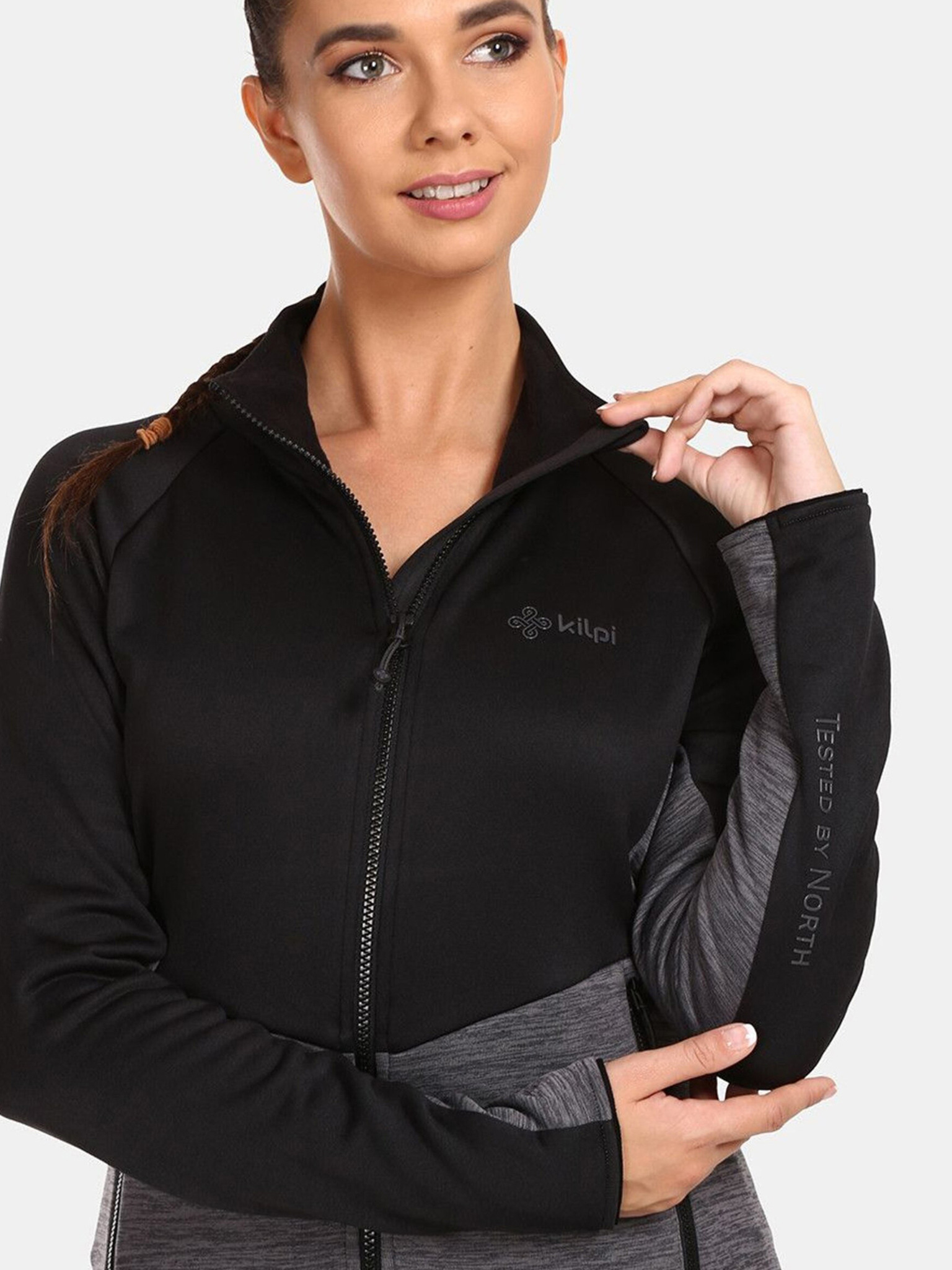 Crno-bijeli Kilpi SKATHI ženski flis sweatshirt s patentnim zatvaračem