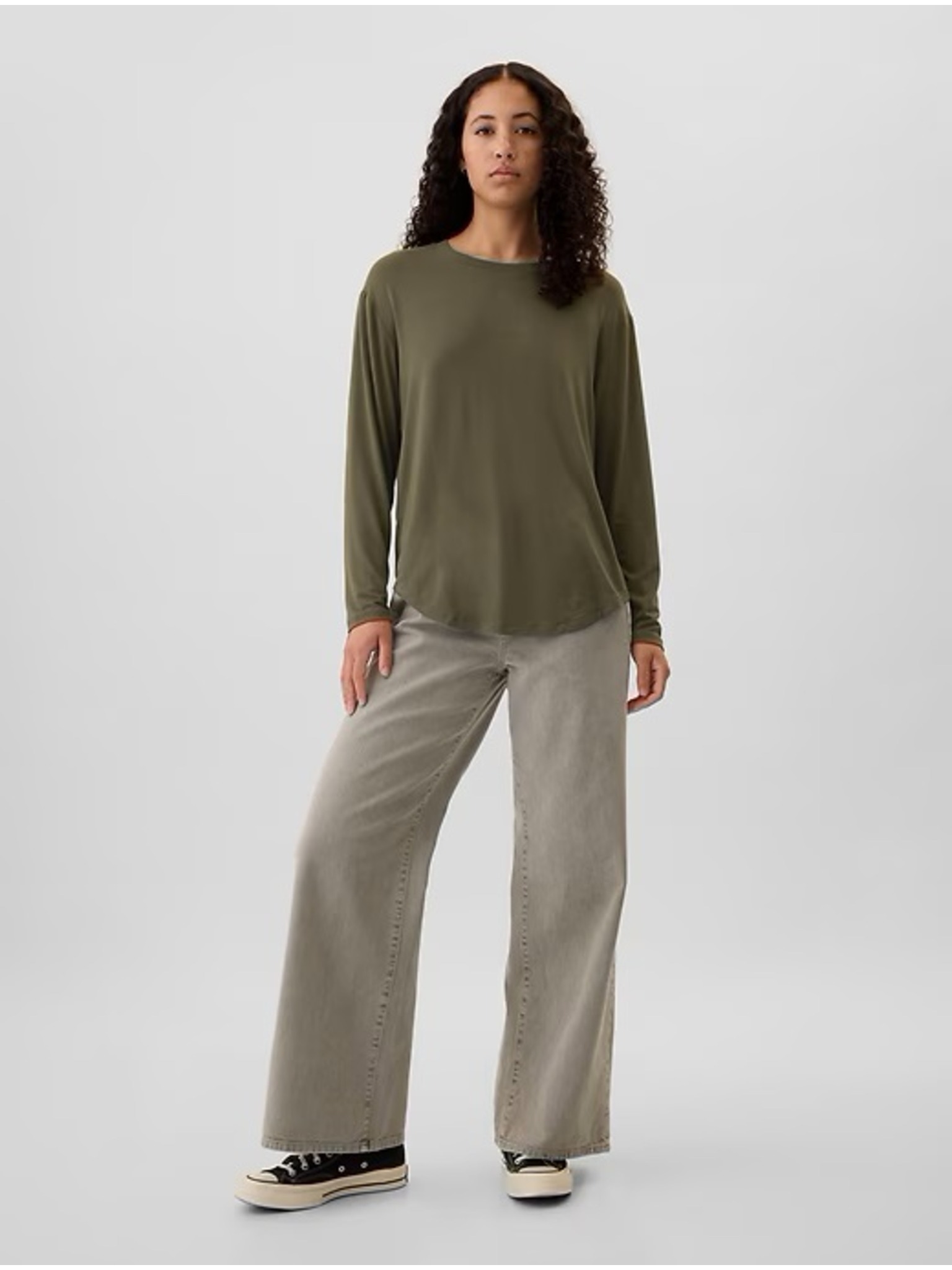 Maslinasta ženska majica dugih rukava Moodo