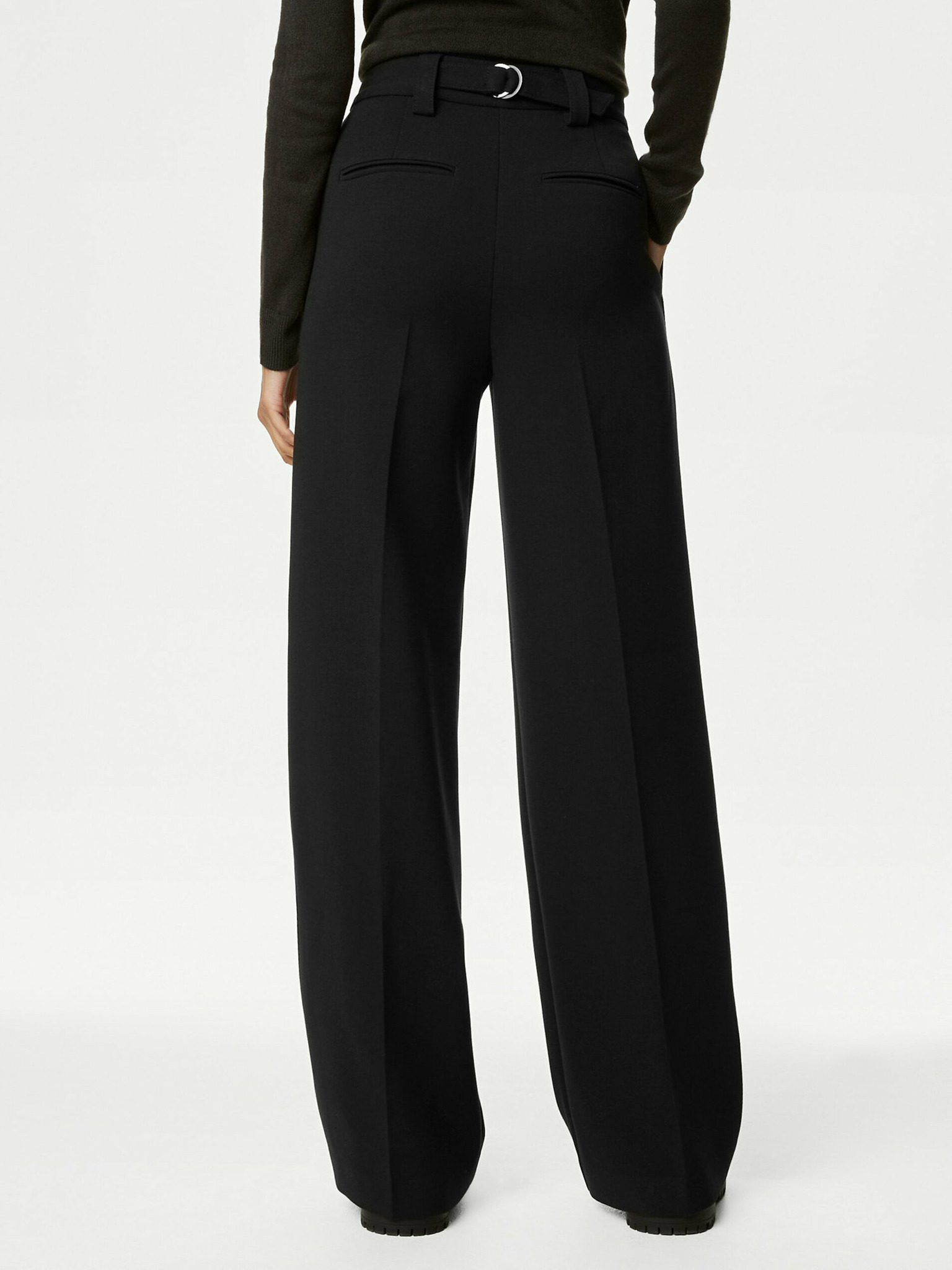 Žersej hlače ravnog kroja s keprom Marks & Spencer crna