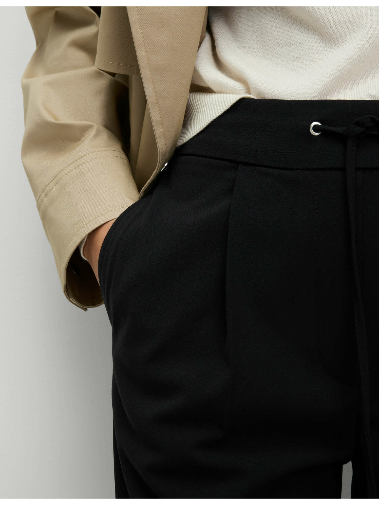Tkana nabrana hlačasta suknja s širokim nogavicama Marks & Spencer crna