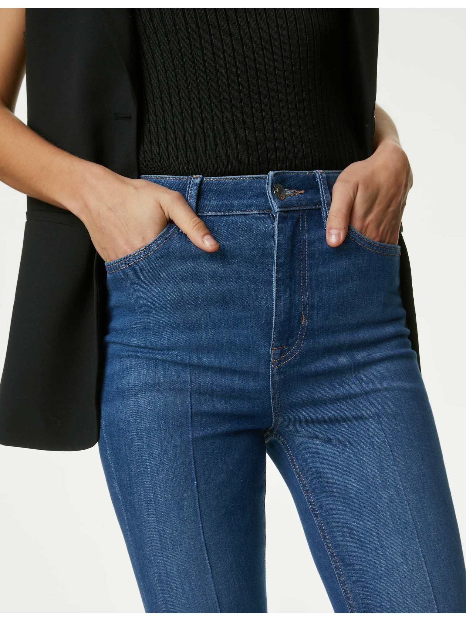 Ravne traperice sa srednjim strukom Marks & Spencer mornarsko plava