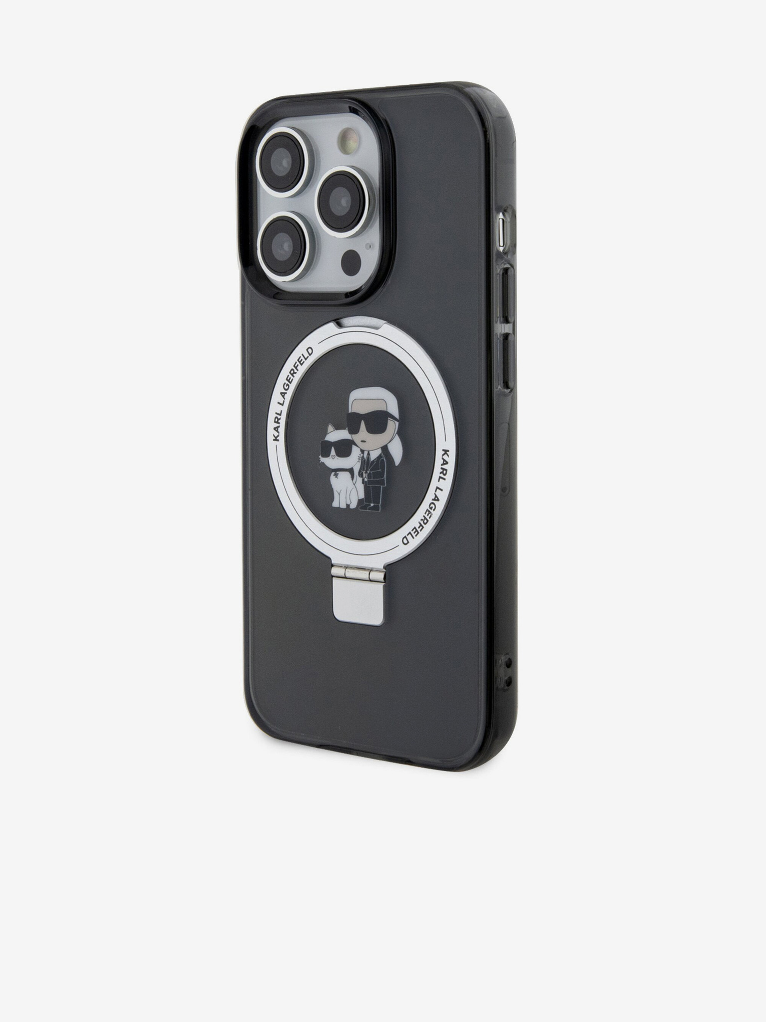 Karl Lagerfeld IML K&CH Heads Repeated Logo MagSafe Stražnji poklopac za iPhone 15 Pro crni