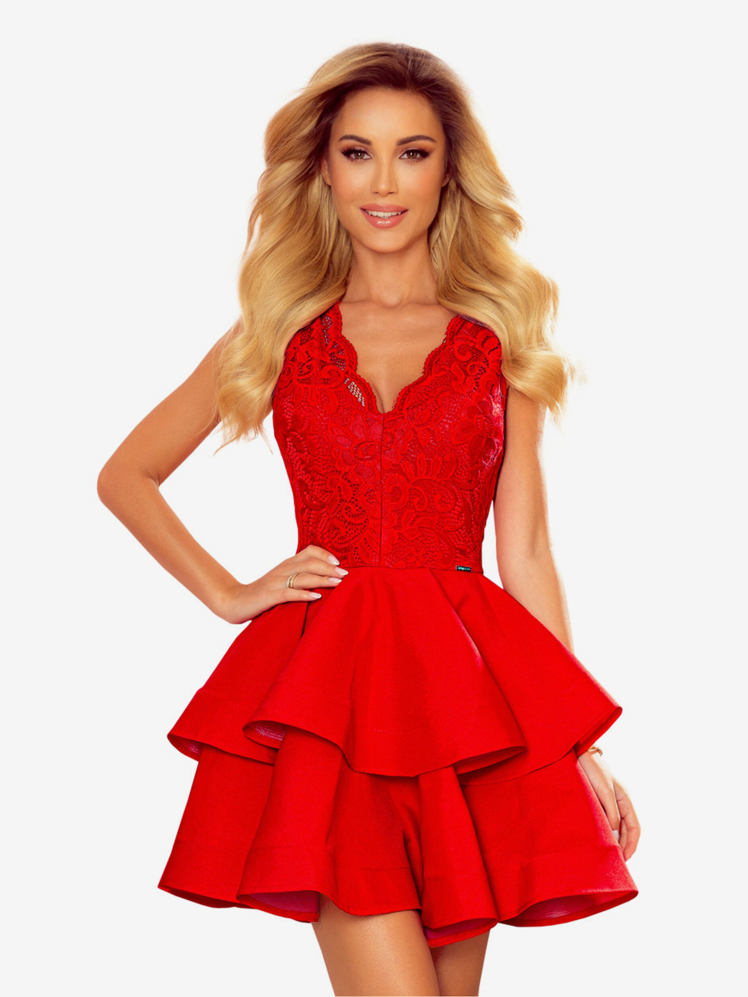 Ekskluzivna haljina s čipkastim dekolteom - crvena Numoco