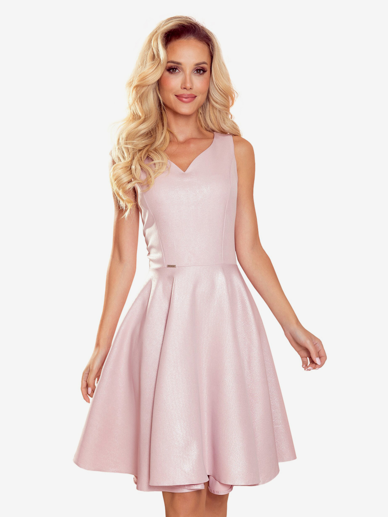 Lepršava haljina s izrezom - puderasto roza Numoco SCARLETT