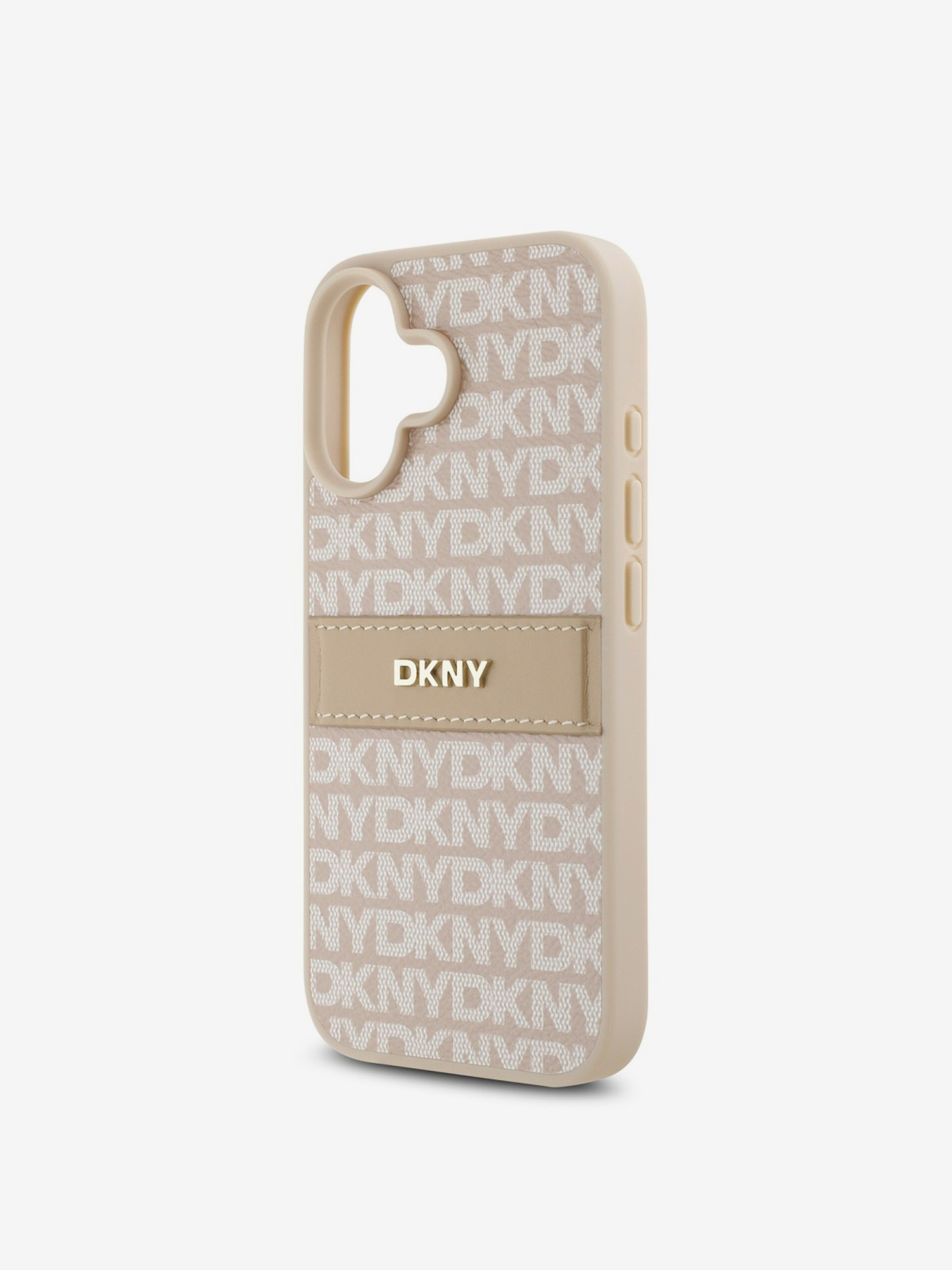 DKNY PU kožna stražnja maska s ponavljajućim uzorkom u tonskim prugama za iPhone 16 Pro bež