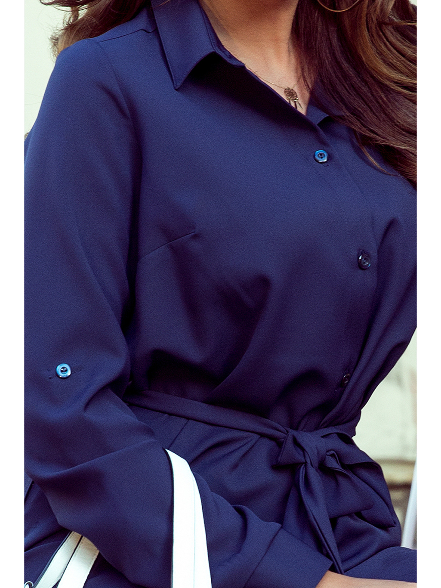 Košuljaste haljine CAMILLE s džepovima i vezivanjem - tamno plave