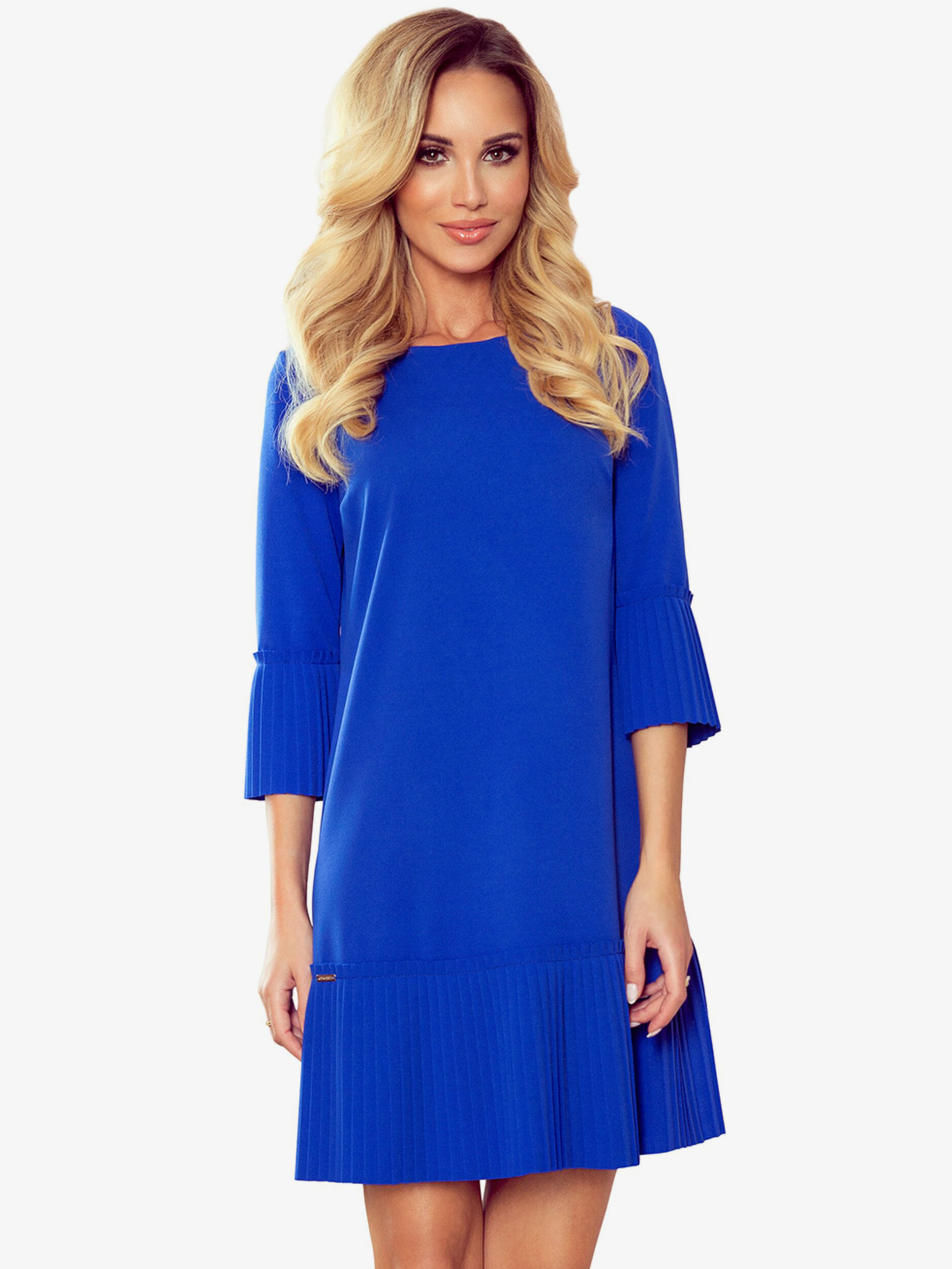 Klasična plisirana haljina s kratkim rukavima i remenom marke Numoco