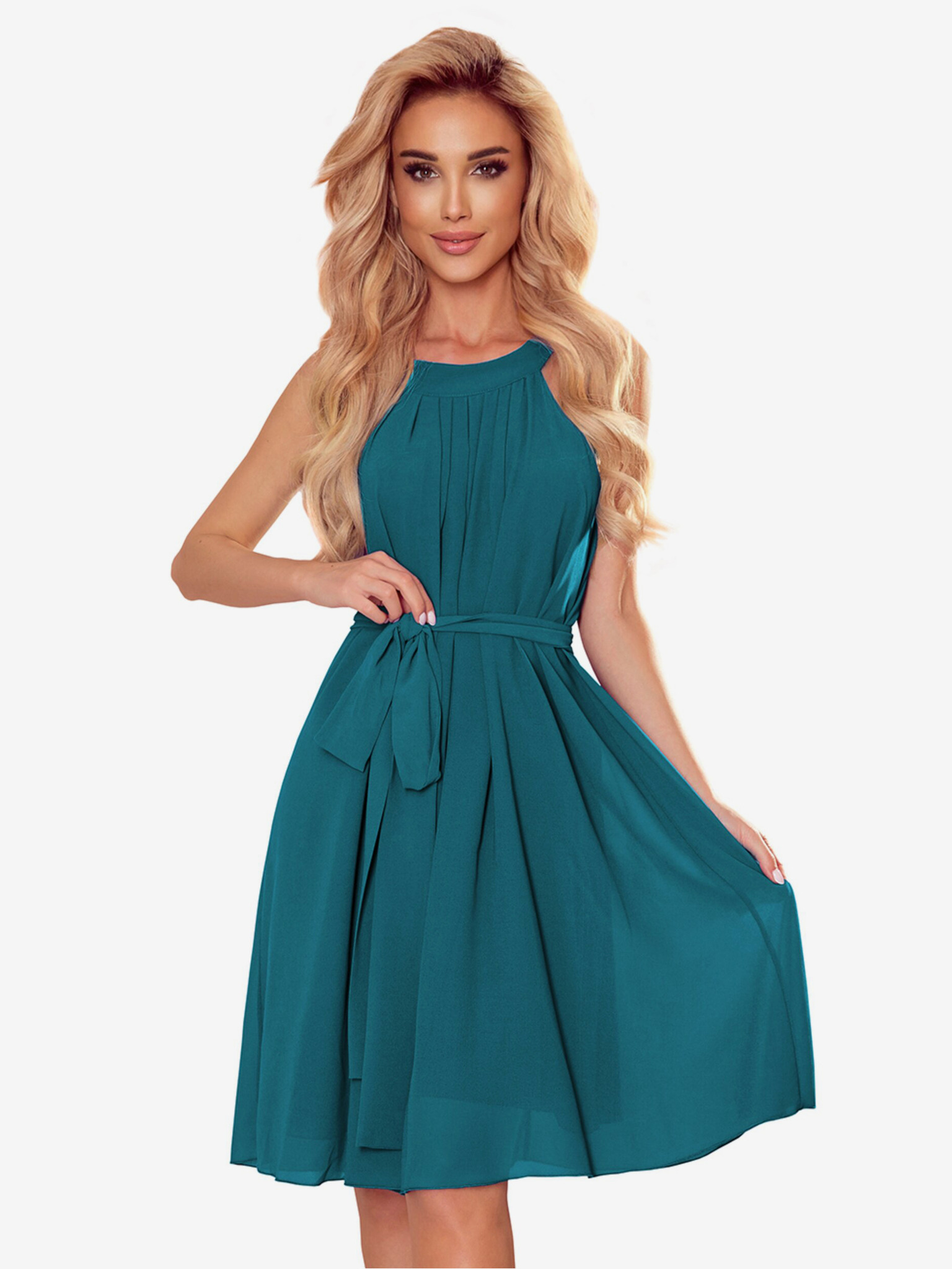 Haljina s dužim leđima, izrezom i remenom - zelena Numoco MAYA