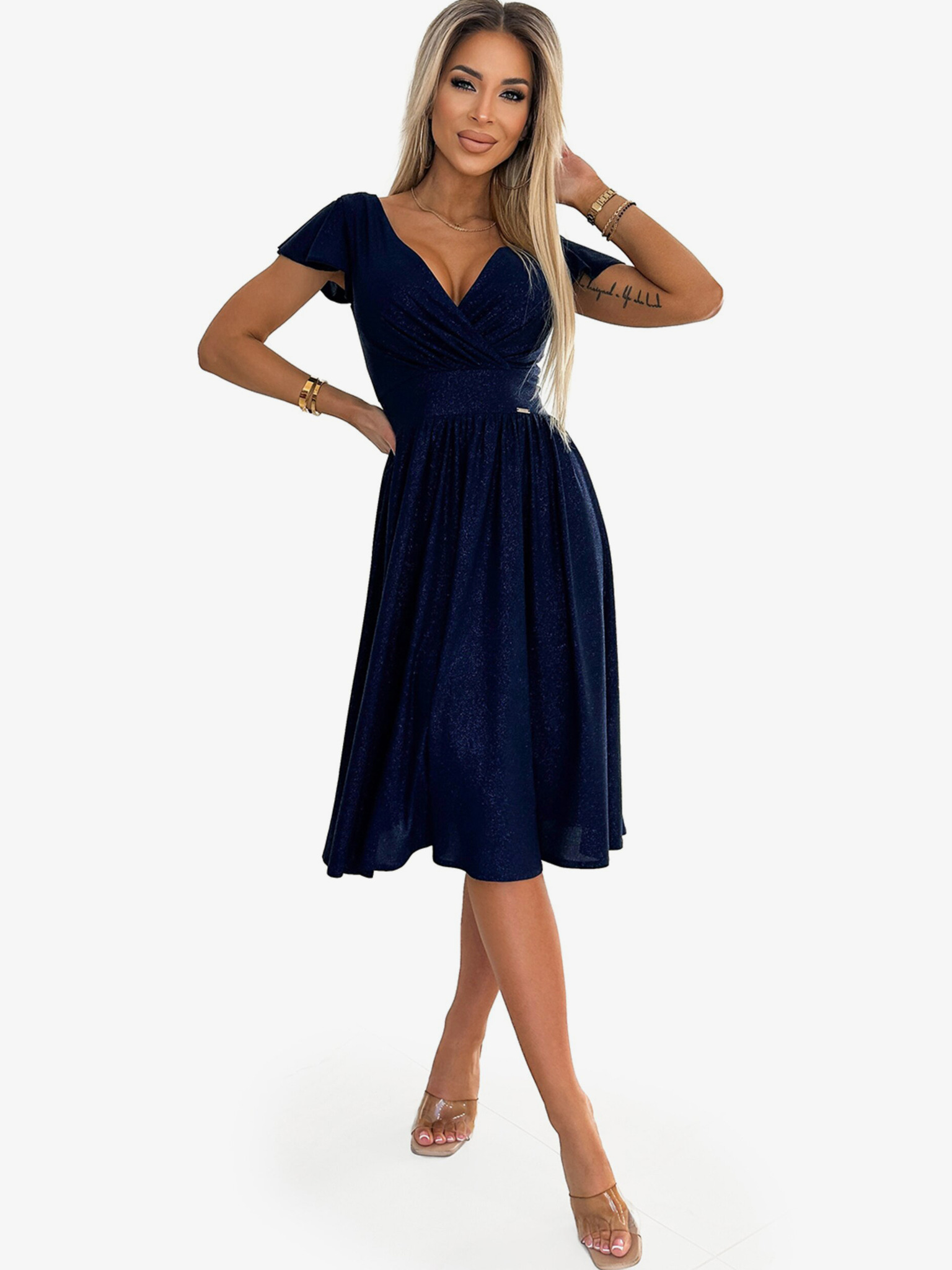 Haljina s dekolteom i kratkim rukavima - tamnoplava sa svjetlucavim Numoco MATILDE