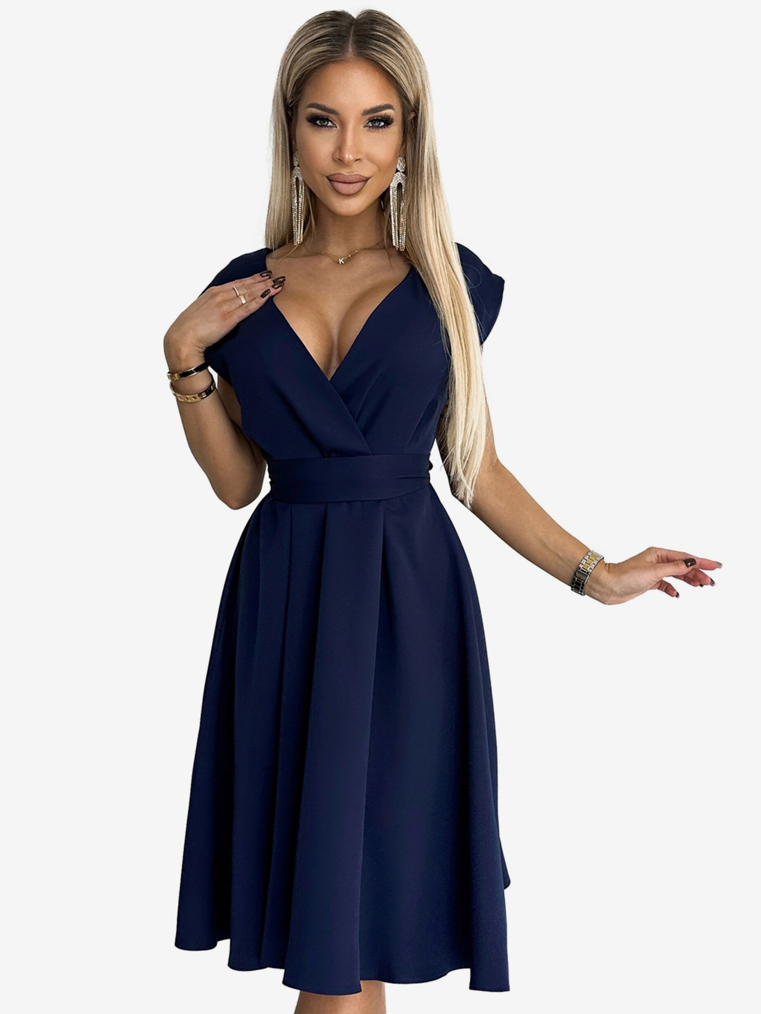 Produžena haljina s dekolteom - tamnoplava Numoco SCARLETT