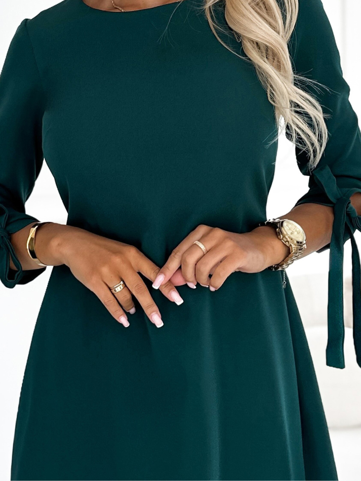 Klasična haljina s dekolteom i dugim rukavima - zelena Numoco ANGELA