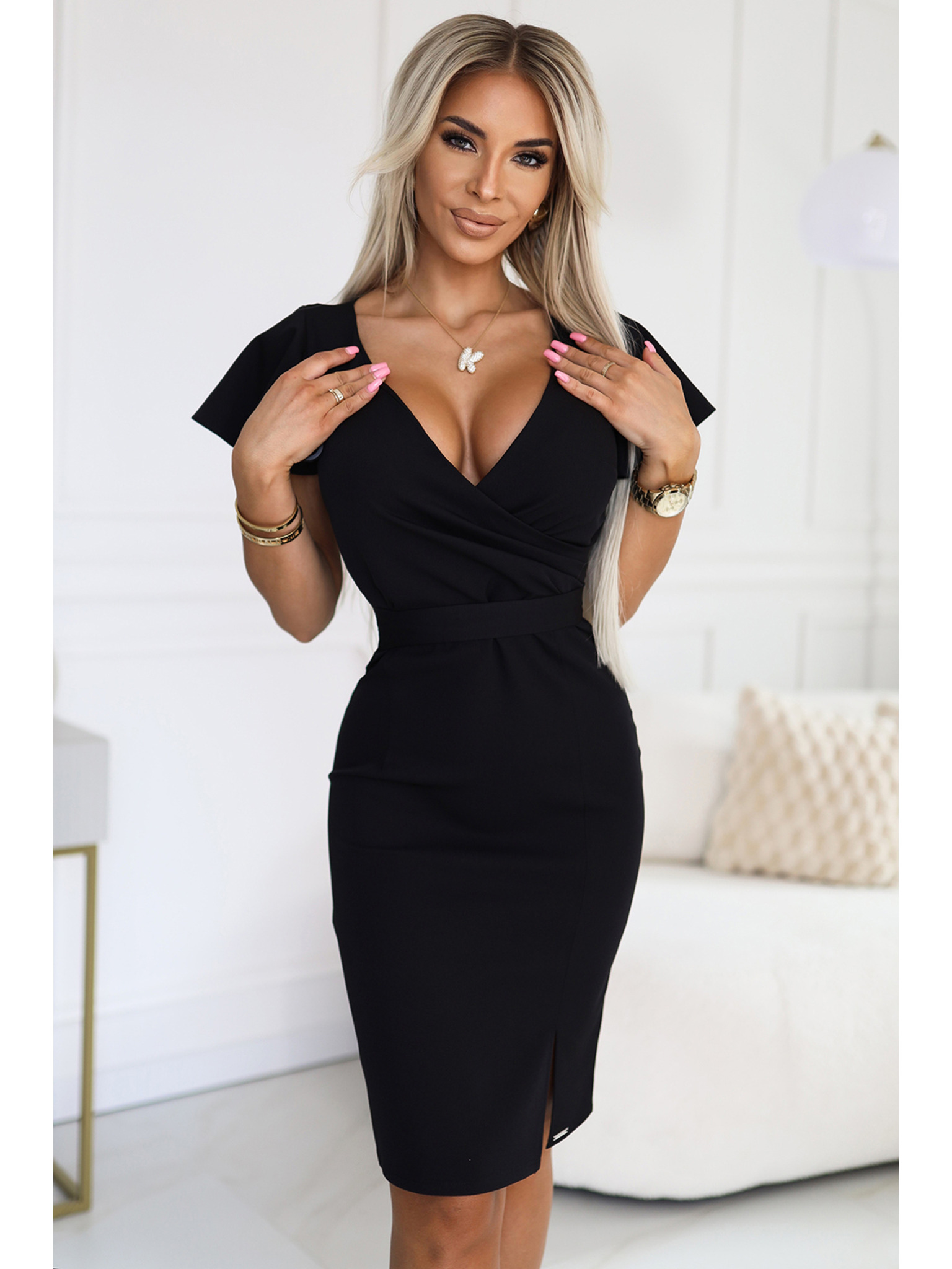 Elegantna haljina s torbom izrezom - crna Numoco NINA