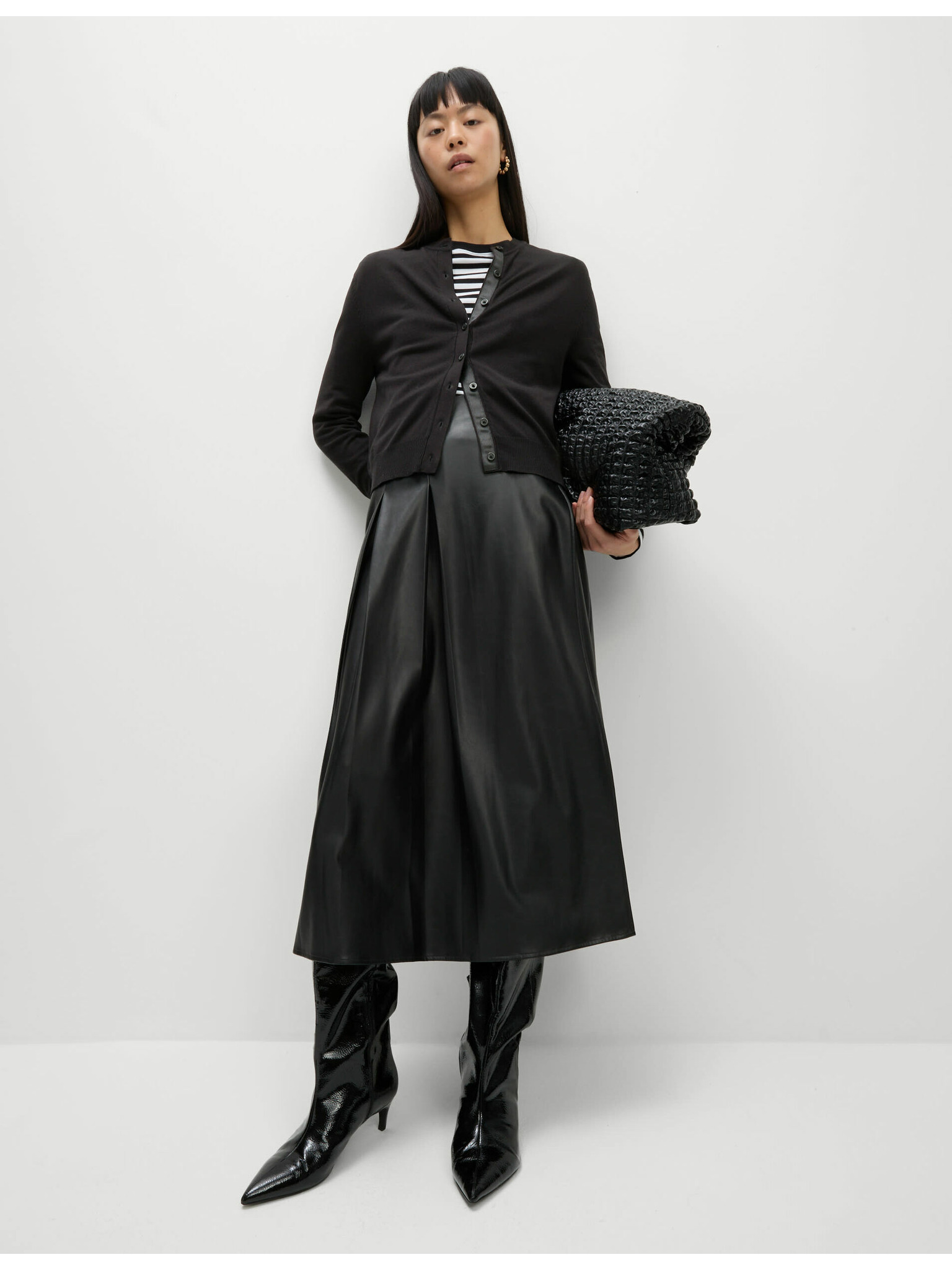 Dugi rebrasti kardigan bez zatvaranja Marks & Spencer crna