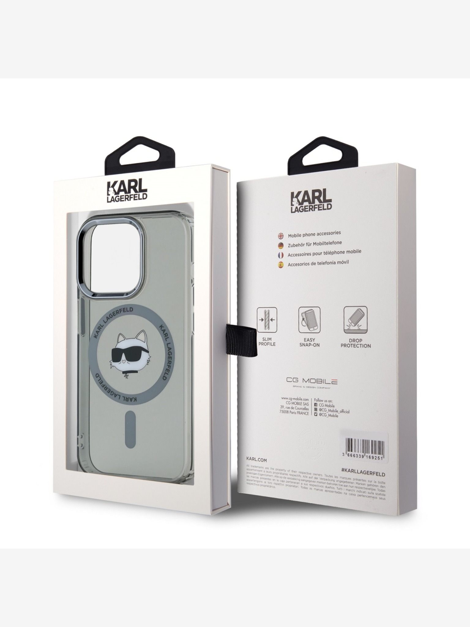 Karl Lagerfeld IML Glitter Karl and Choupette Sketch MagSafe Stražnji poklopac za iPhone 16 Pro prozirni