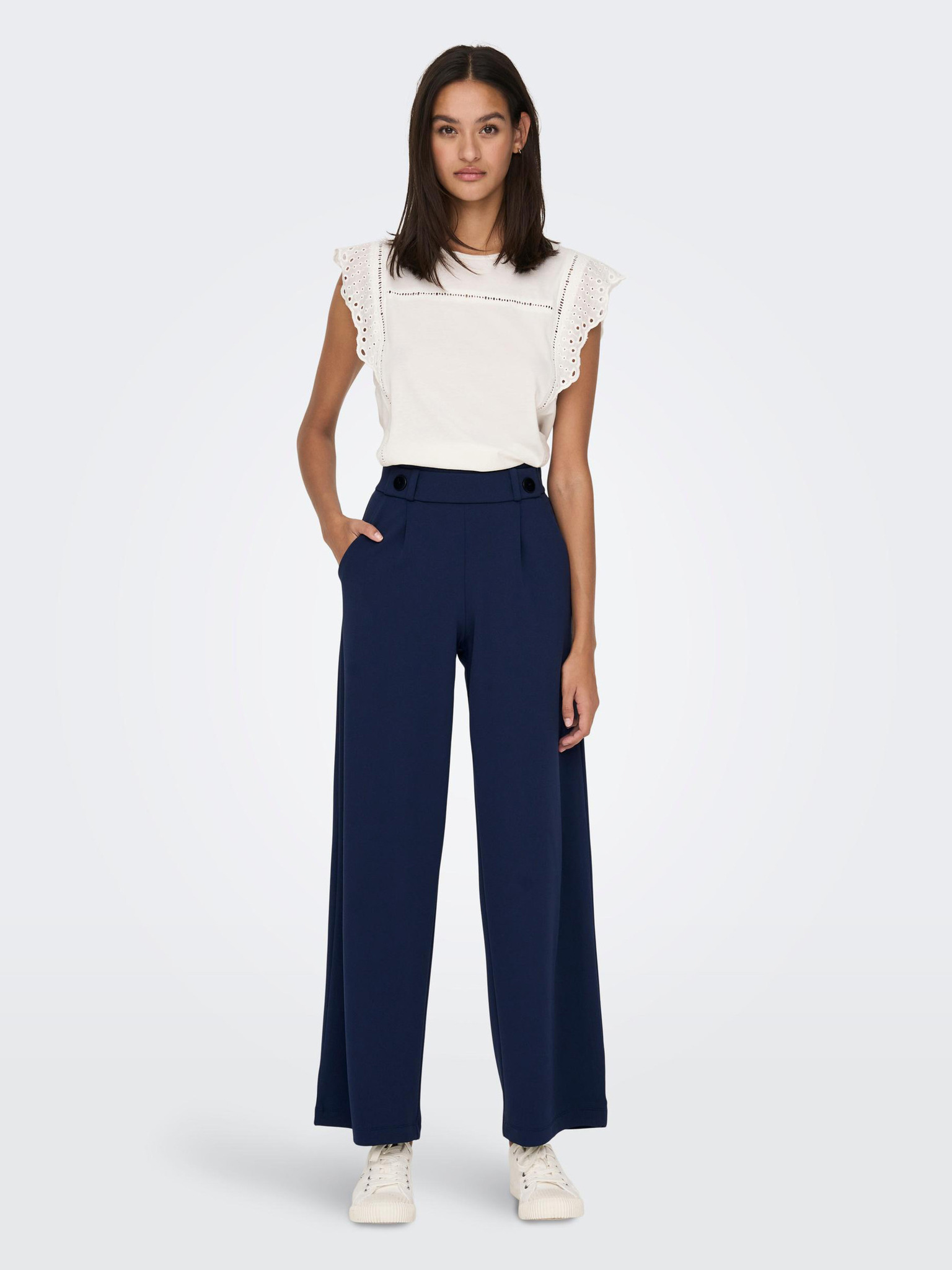 JDY Geggo ženske široke hlače krem boje
