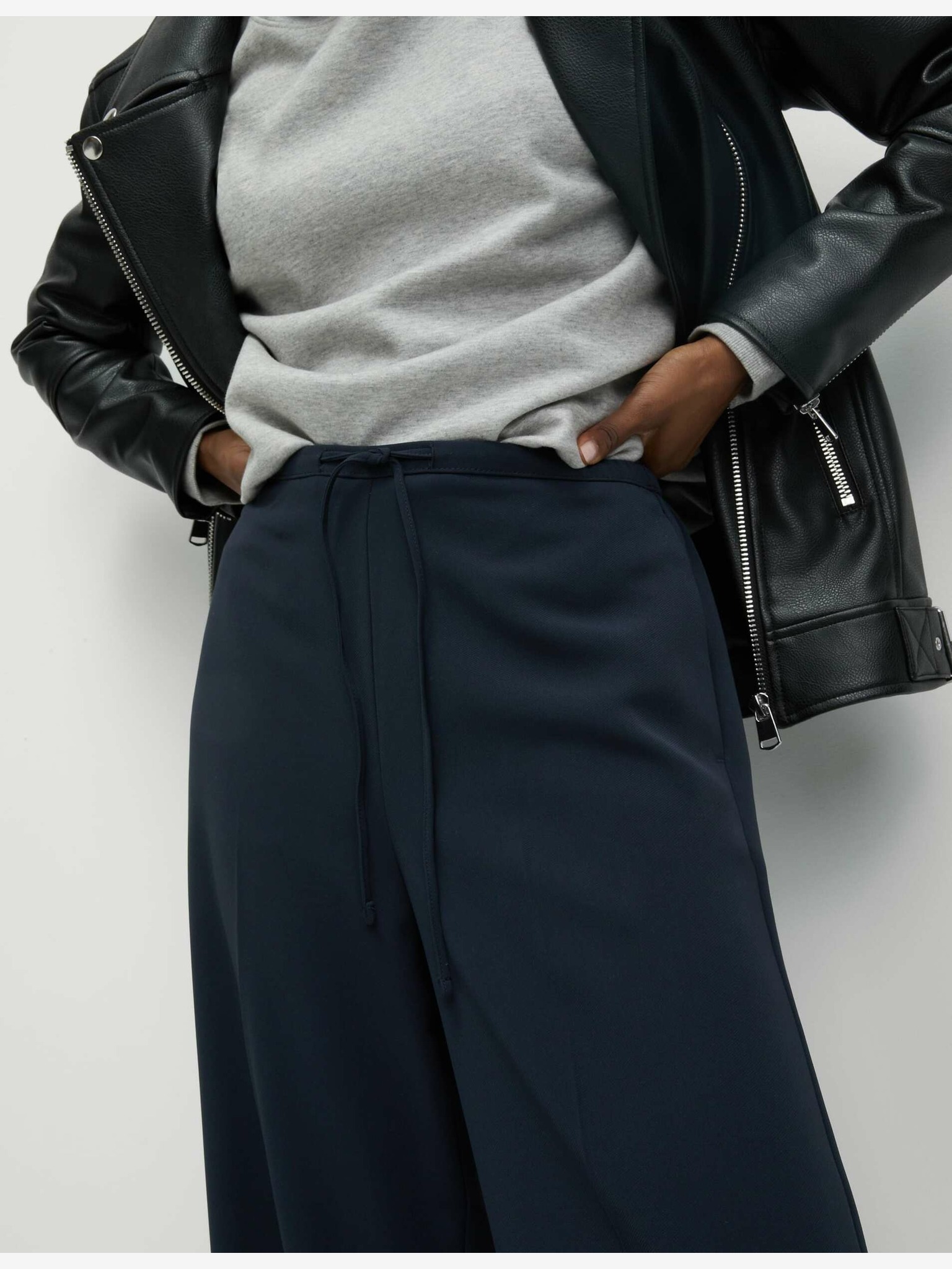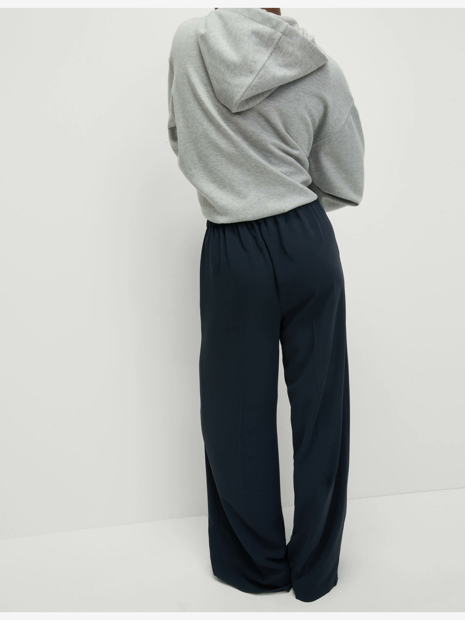 Marks & Spencer široke krep hlače s elastičnim strukom crne