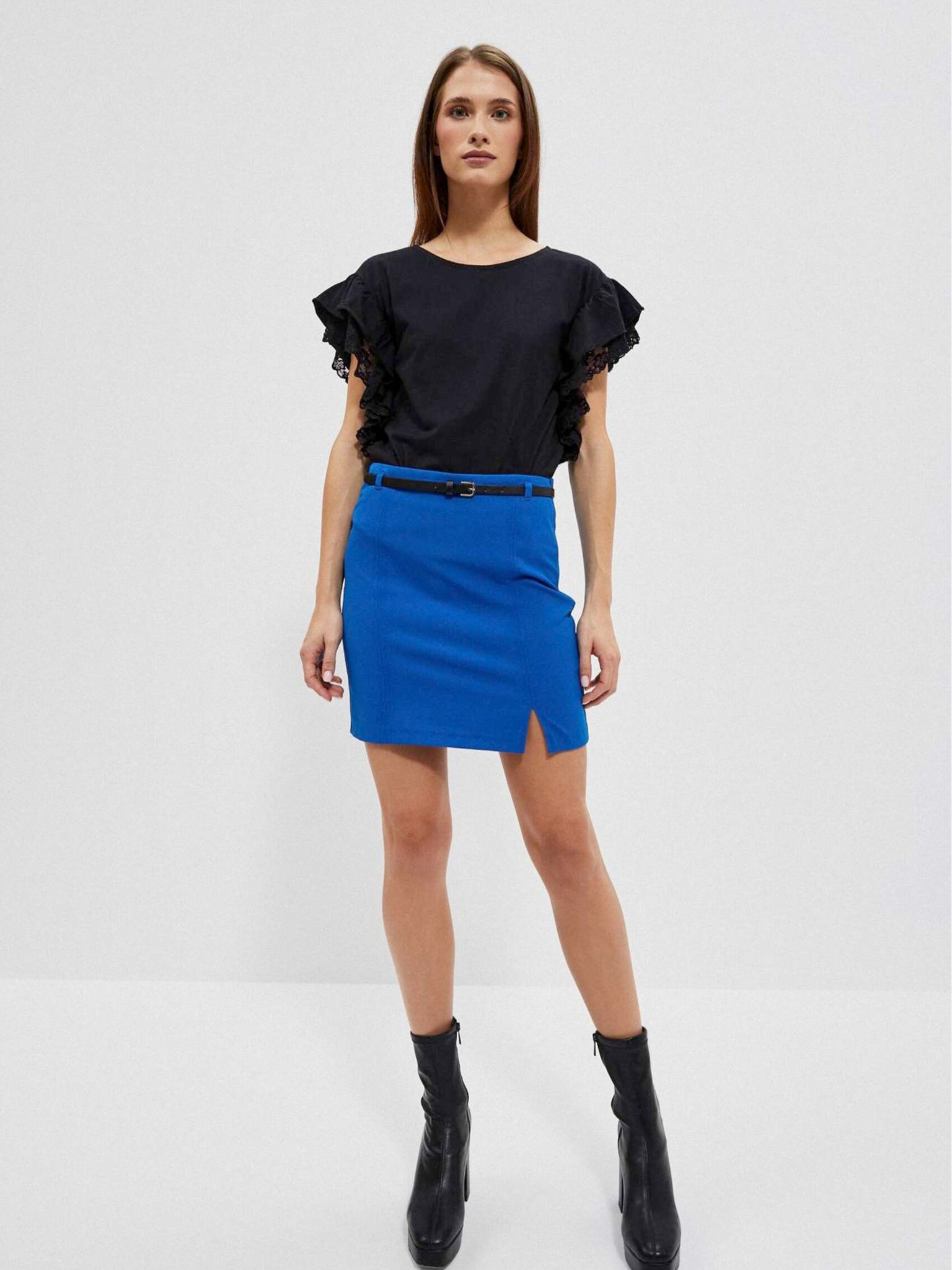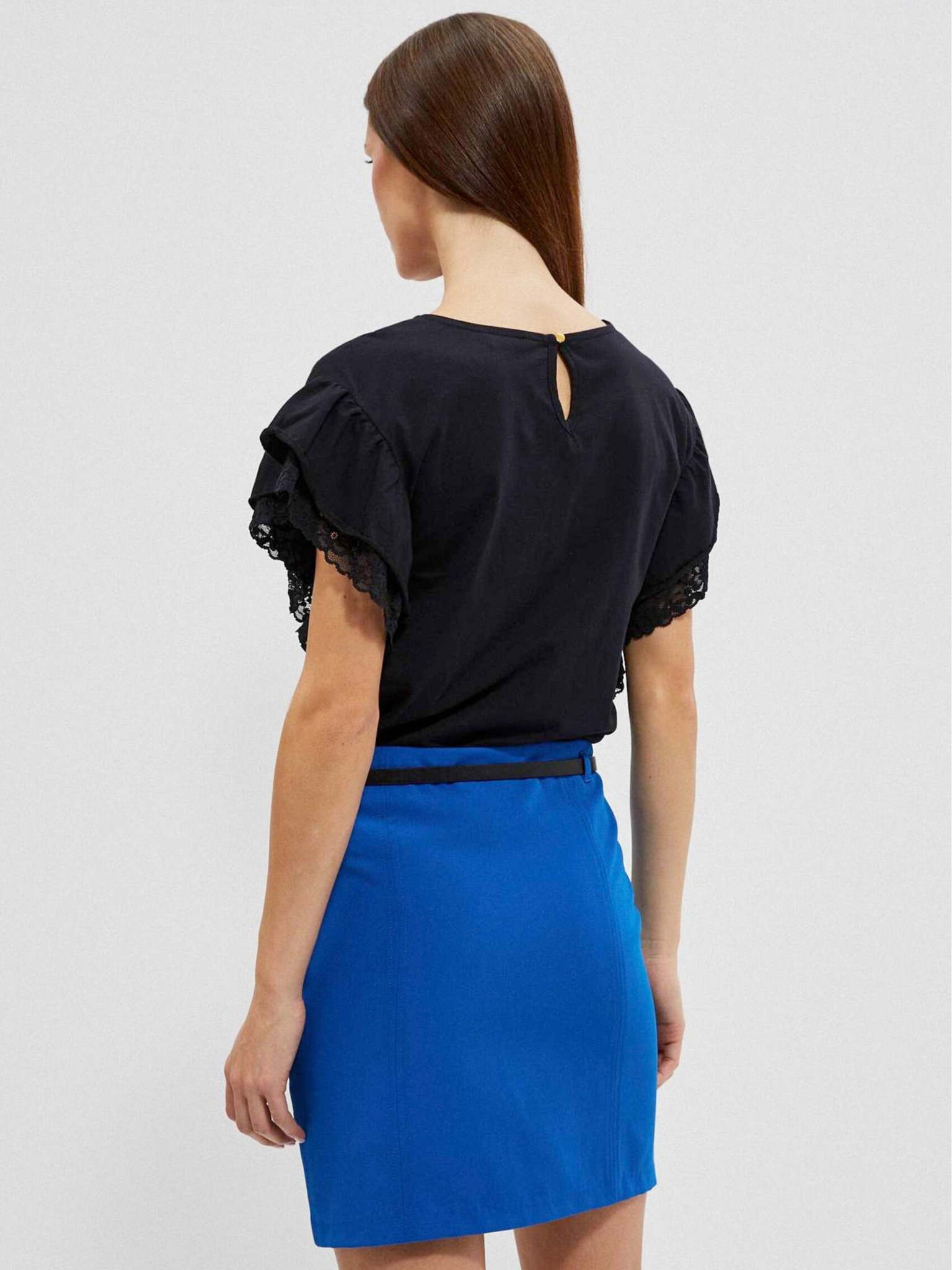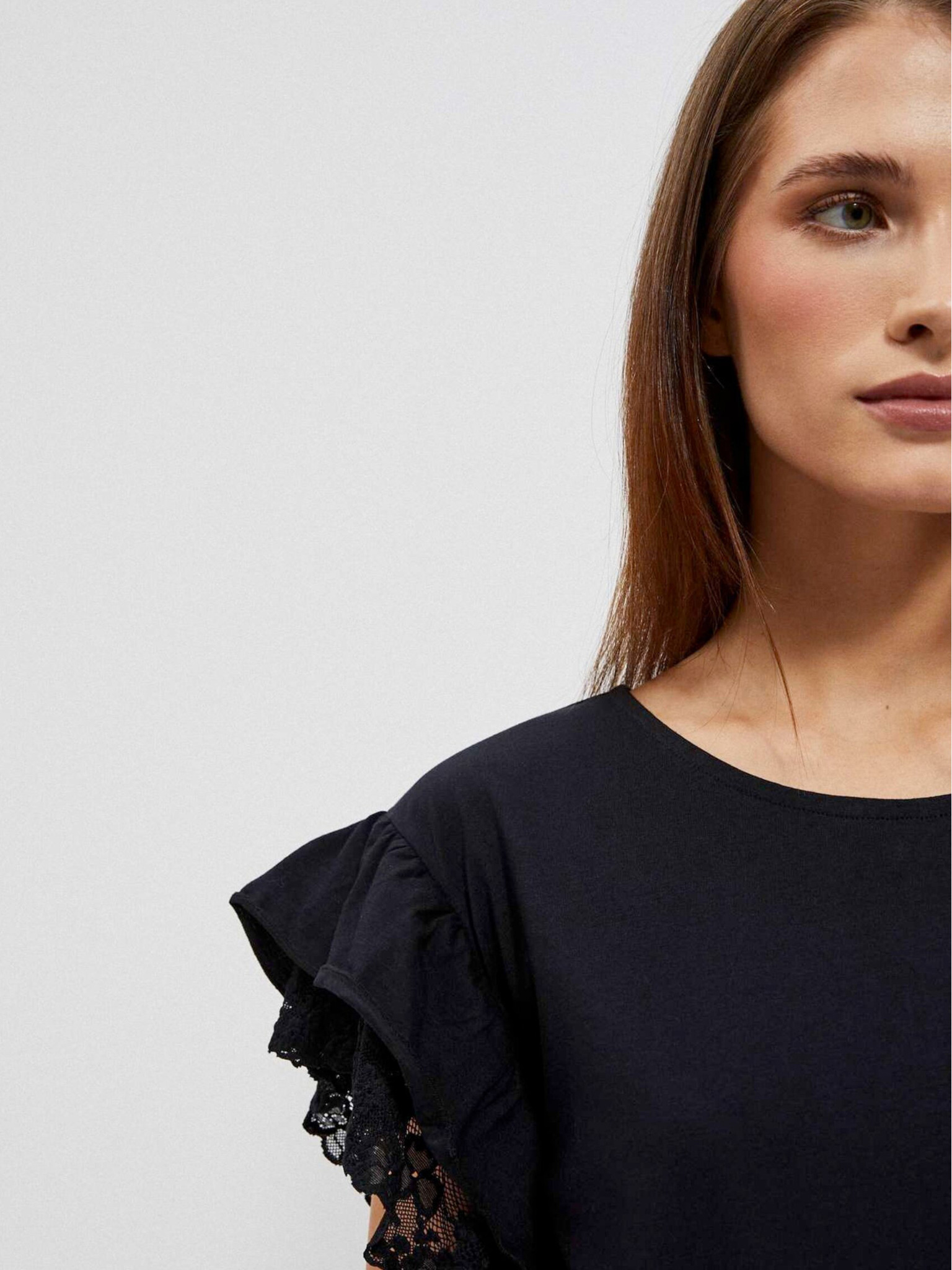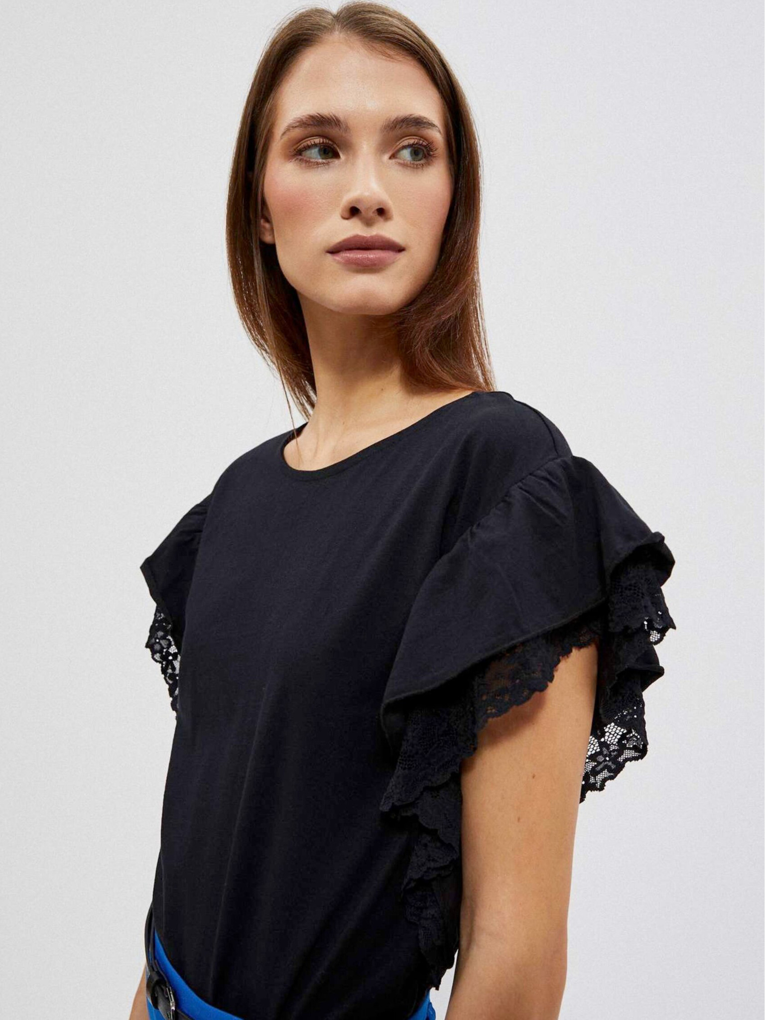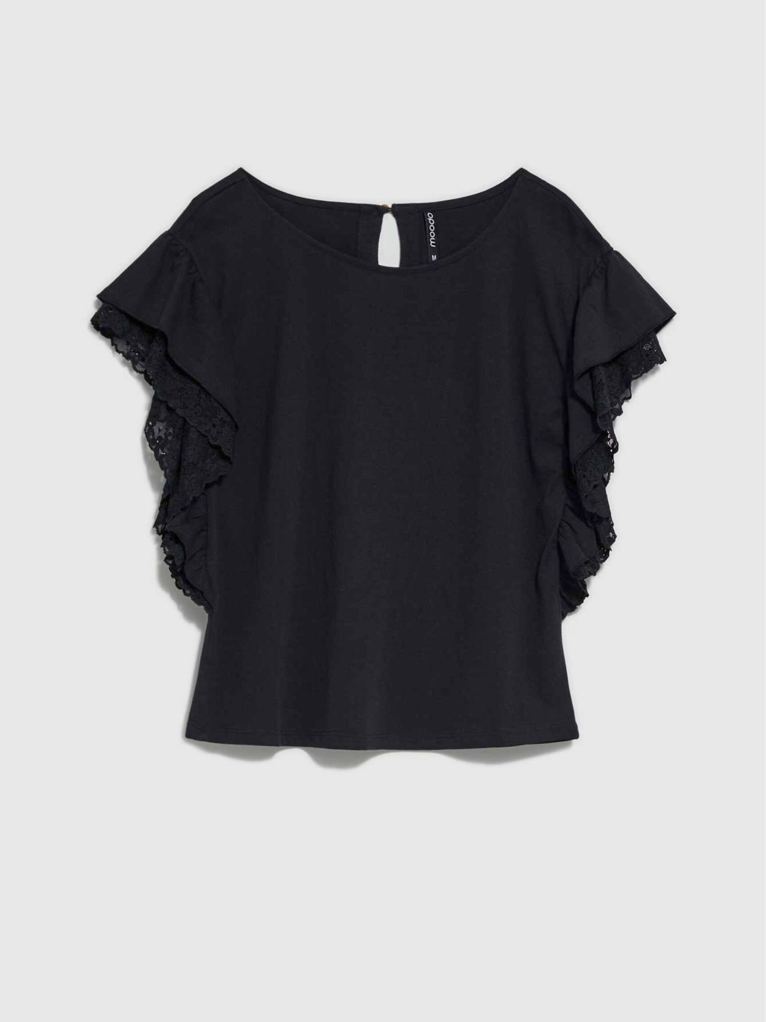 Moodo crna ženska bluza s volanima na ramenima