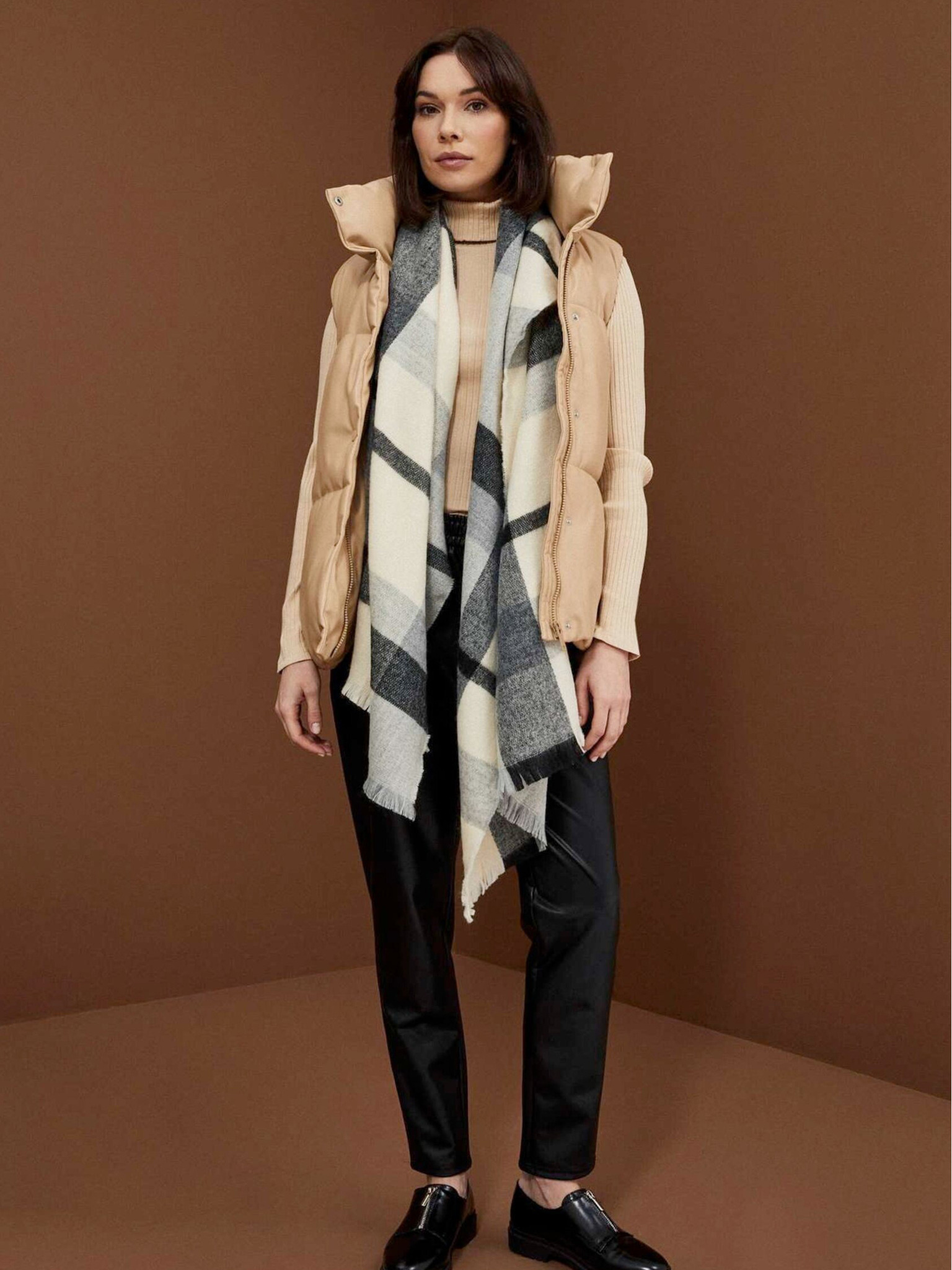 Smeđe-crni ženski Moodo šal s uzorkom