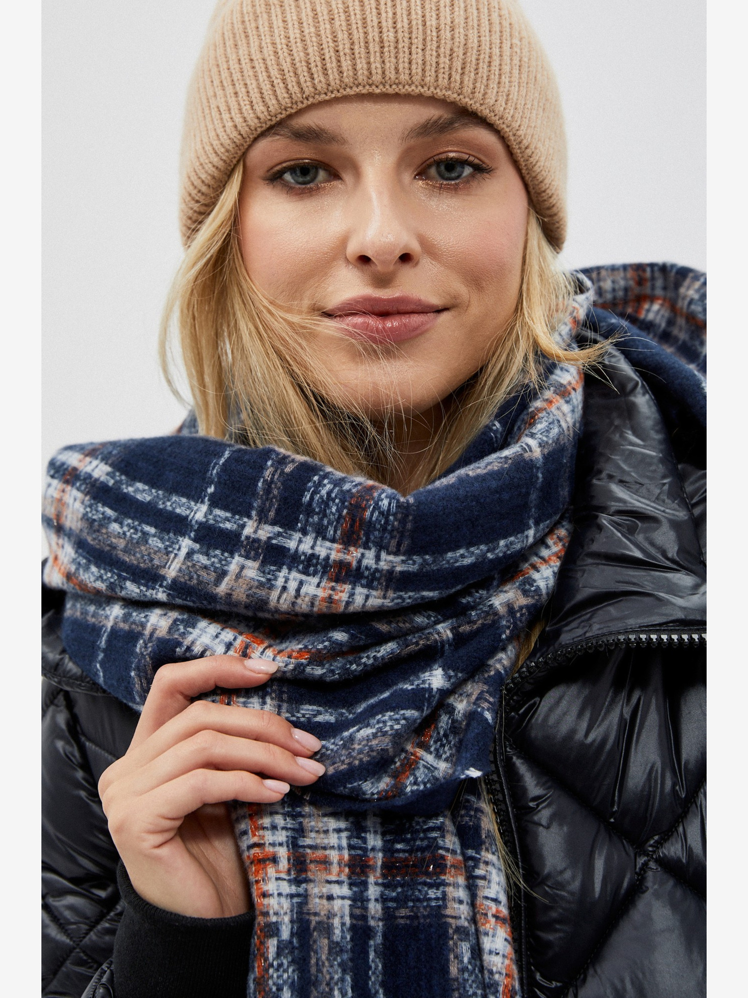 Bijelo-smeđi Moodo ženski šal na kockice