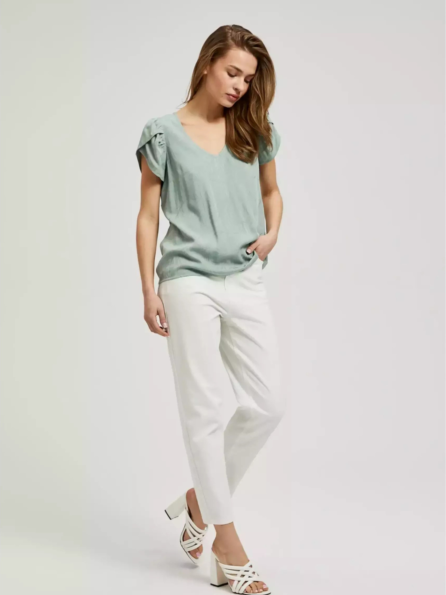 Ženski top s džepom Moodo – maslinasti