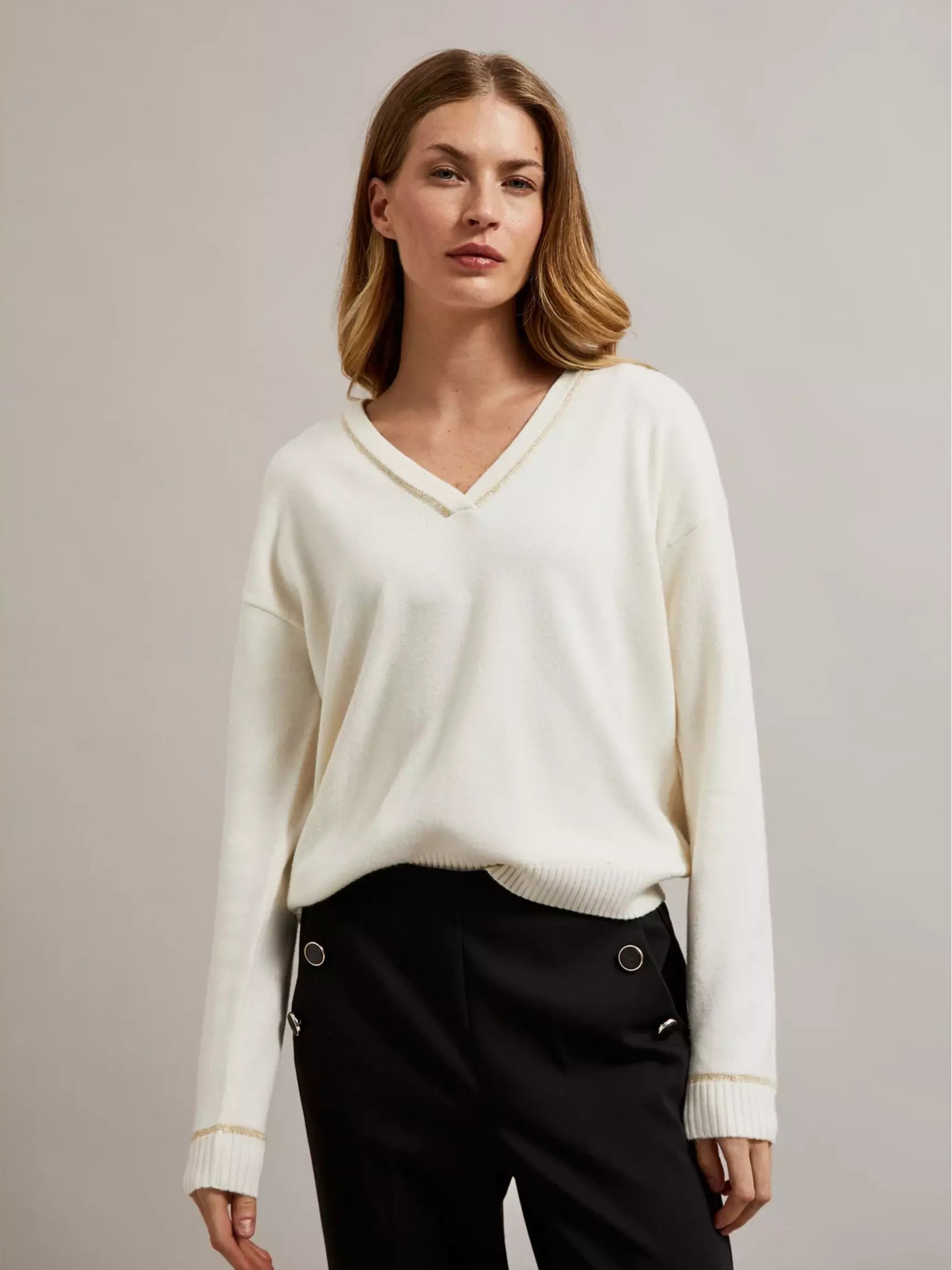 Bijeli džemper s V-izrezom