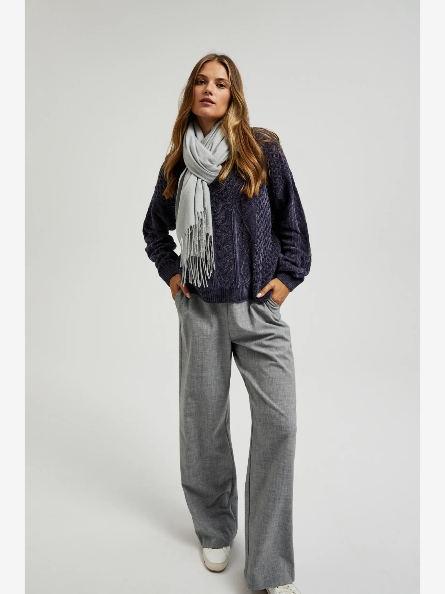 Sivi ljetni šal s izlizanim rubom marke Moodo