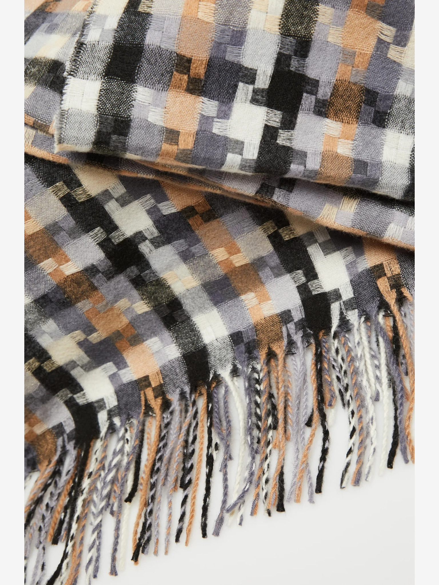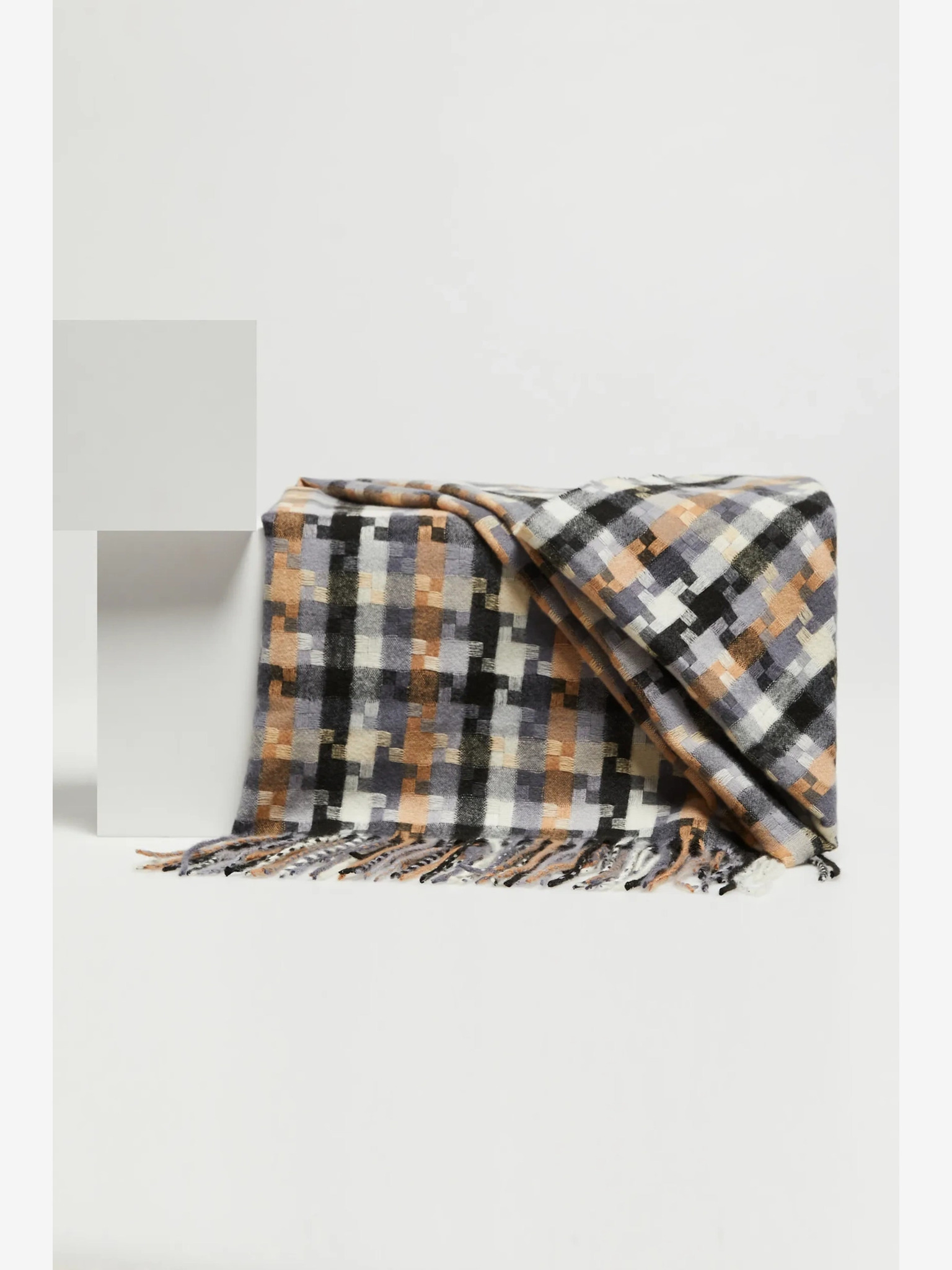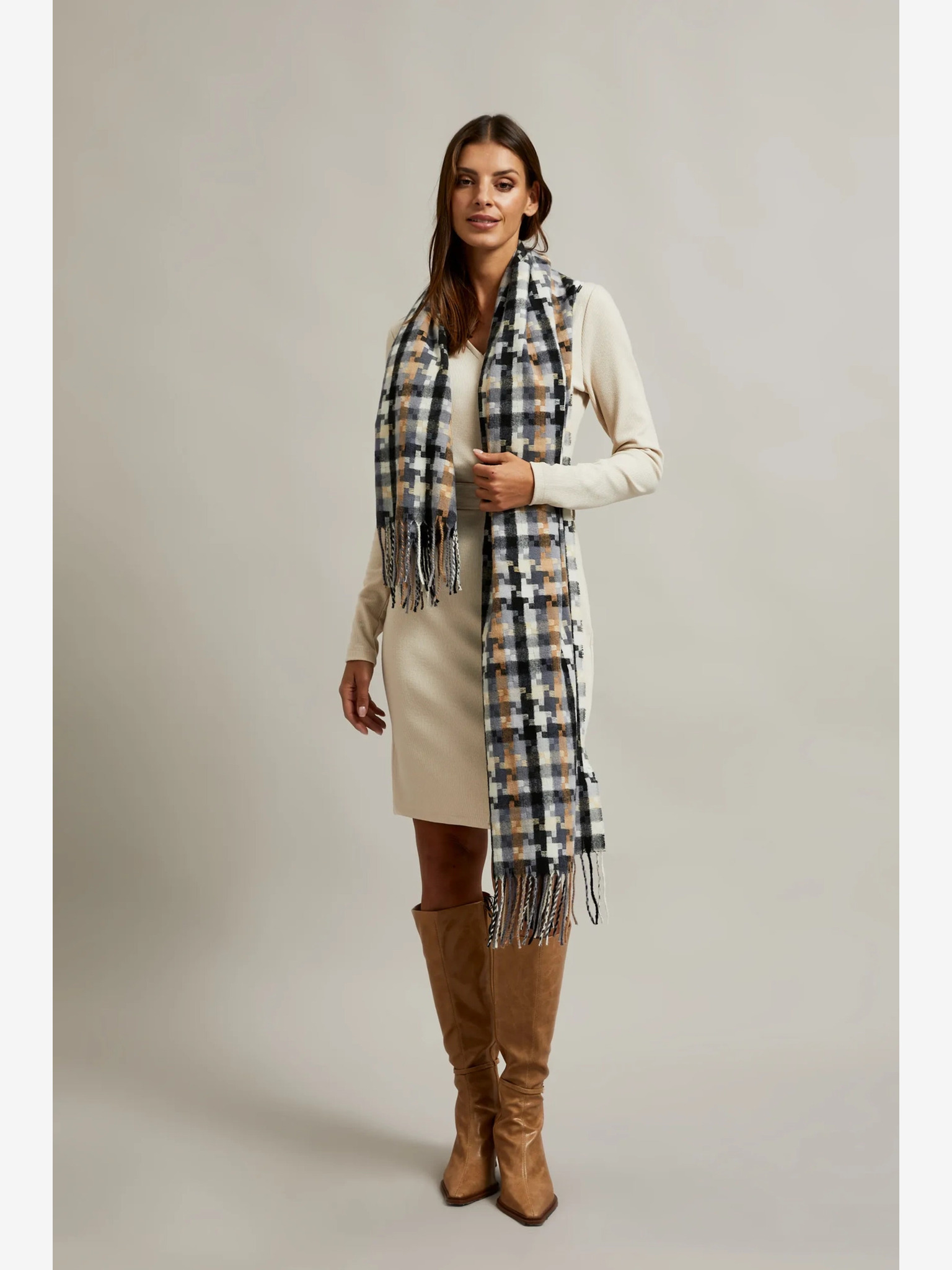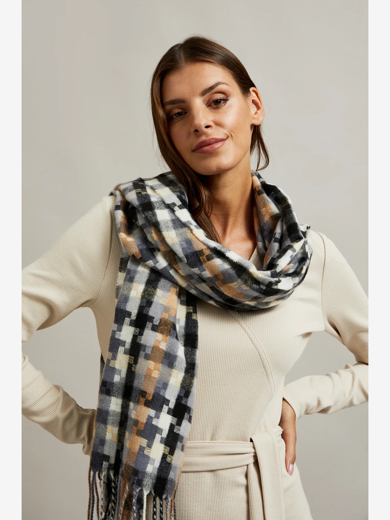 Bijelo-smeđi Moodo ženski šal na kockice