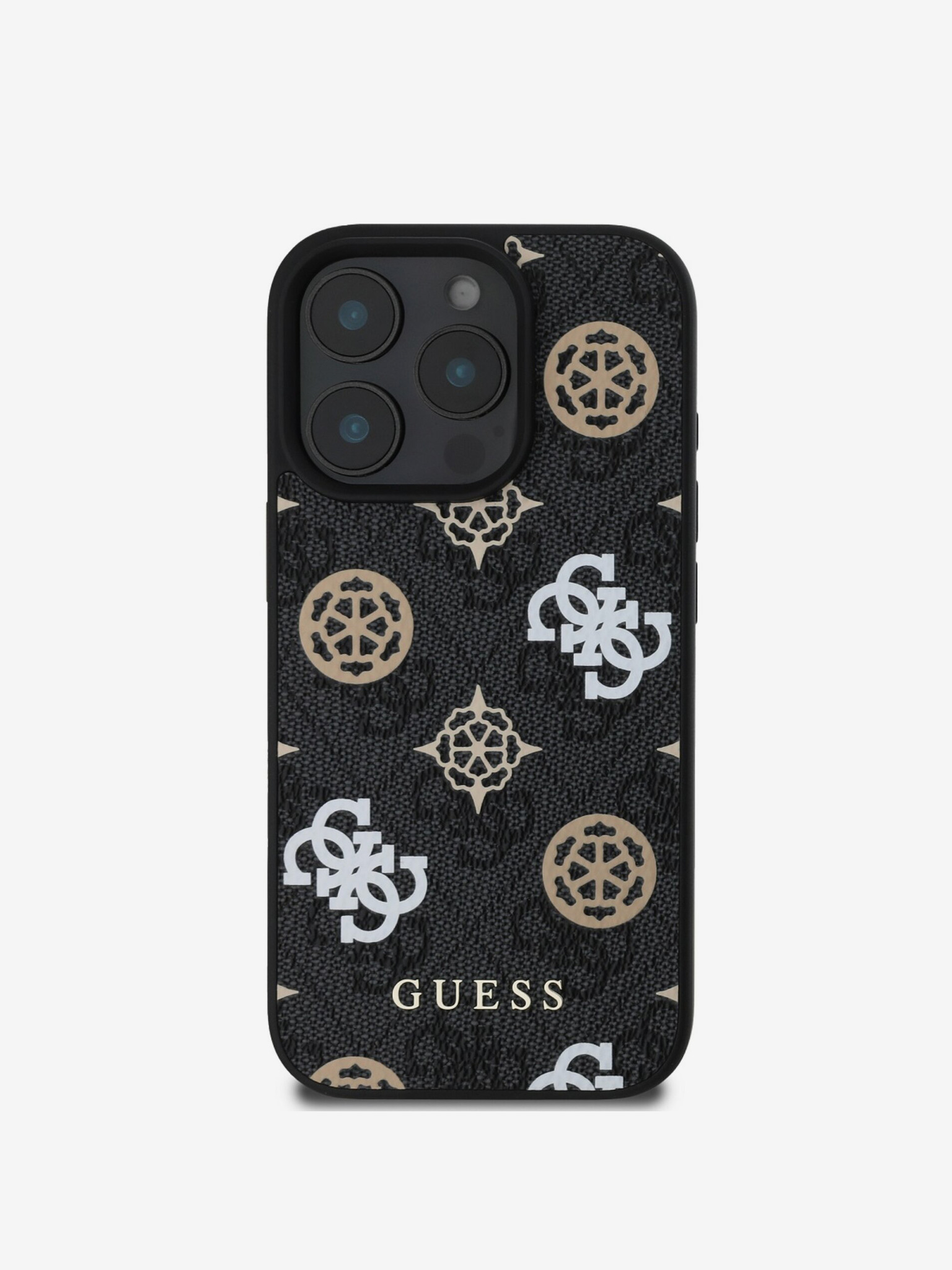 Guess PU Kožni 4G Šareni Prstenasti Remen MagSafe Stražnji Poklopac za iPhone 15 Pro Crna