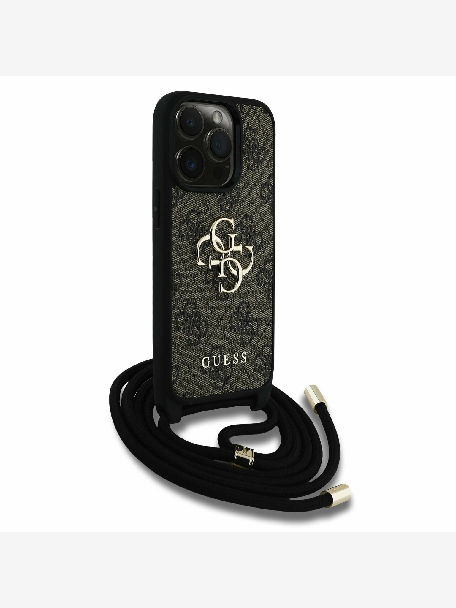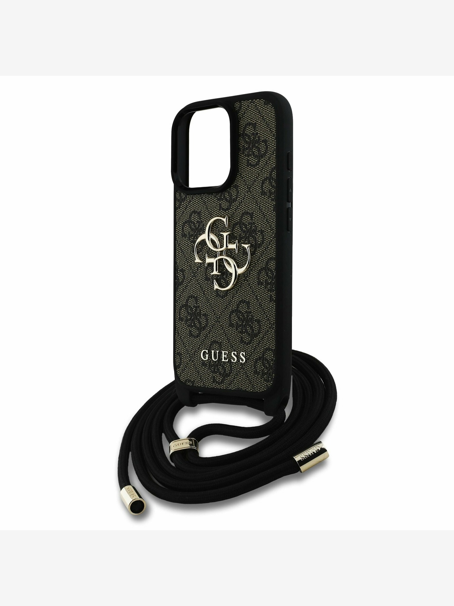 Guess PU 4G Metal Logo Strap Stražnji Poklopac za iPhone 16 Smeđi