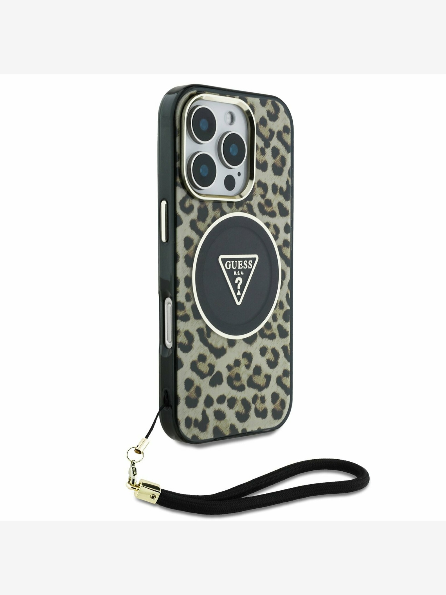 Guess PU Kožni 4G Šareni Prstenasti Remen MagSafe Stražnji Poklopac za iPhone 16 Crna