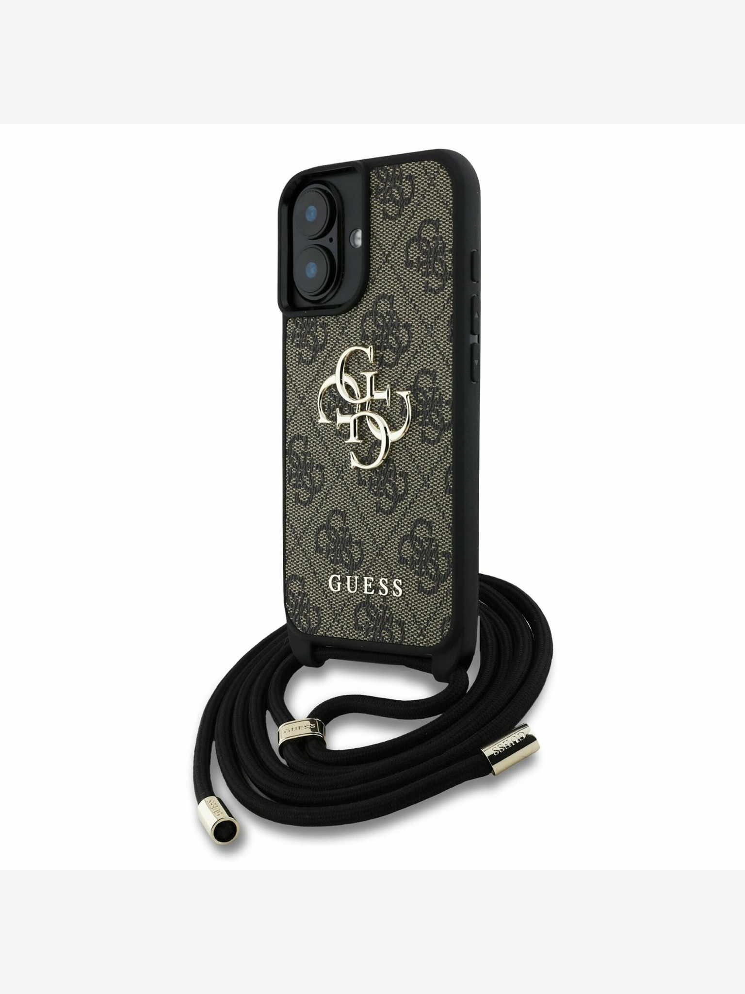 Guess PU 4G Metal Logo Strap Stražnji Poklopac za iPhone 16 Smeđi