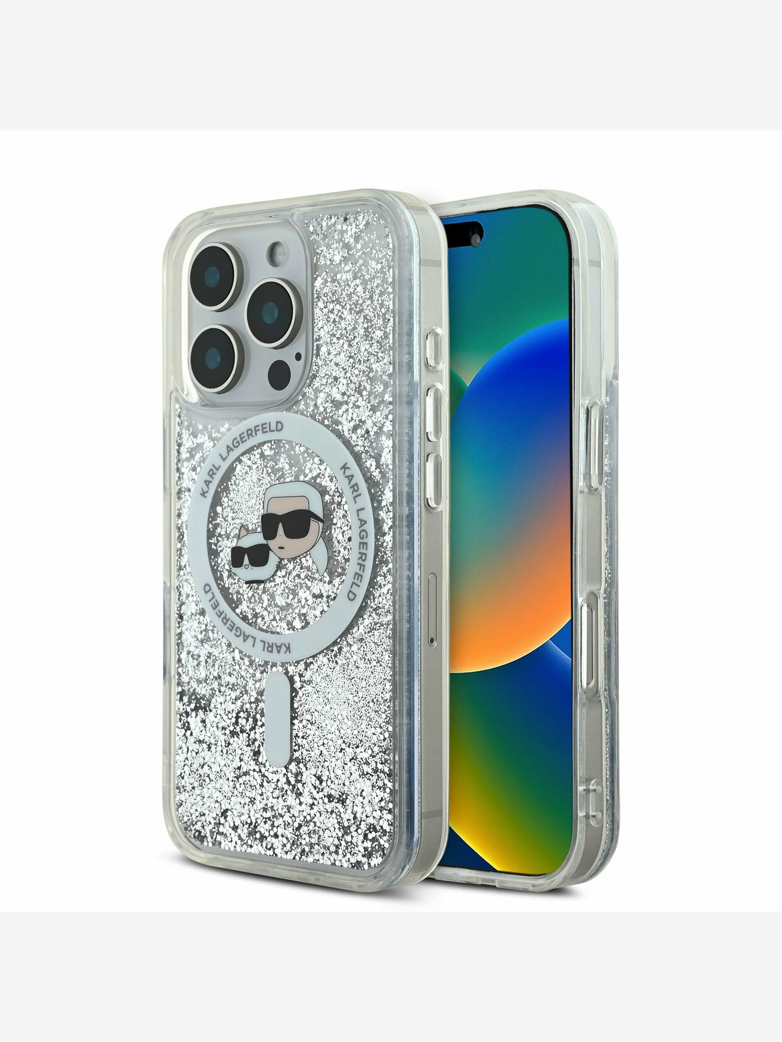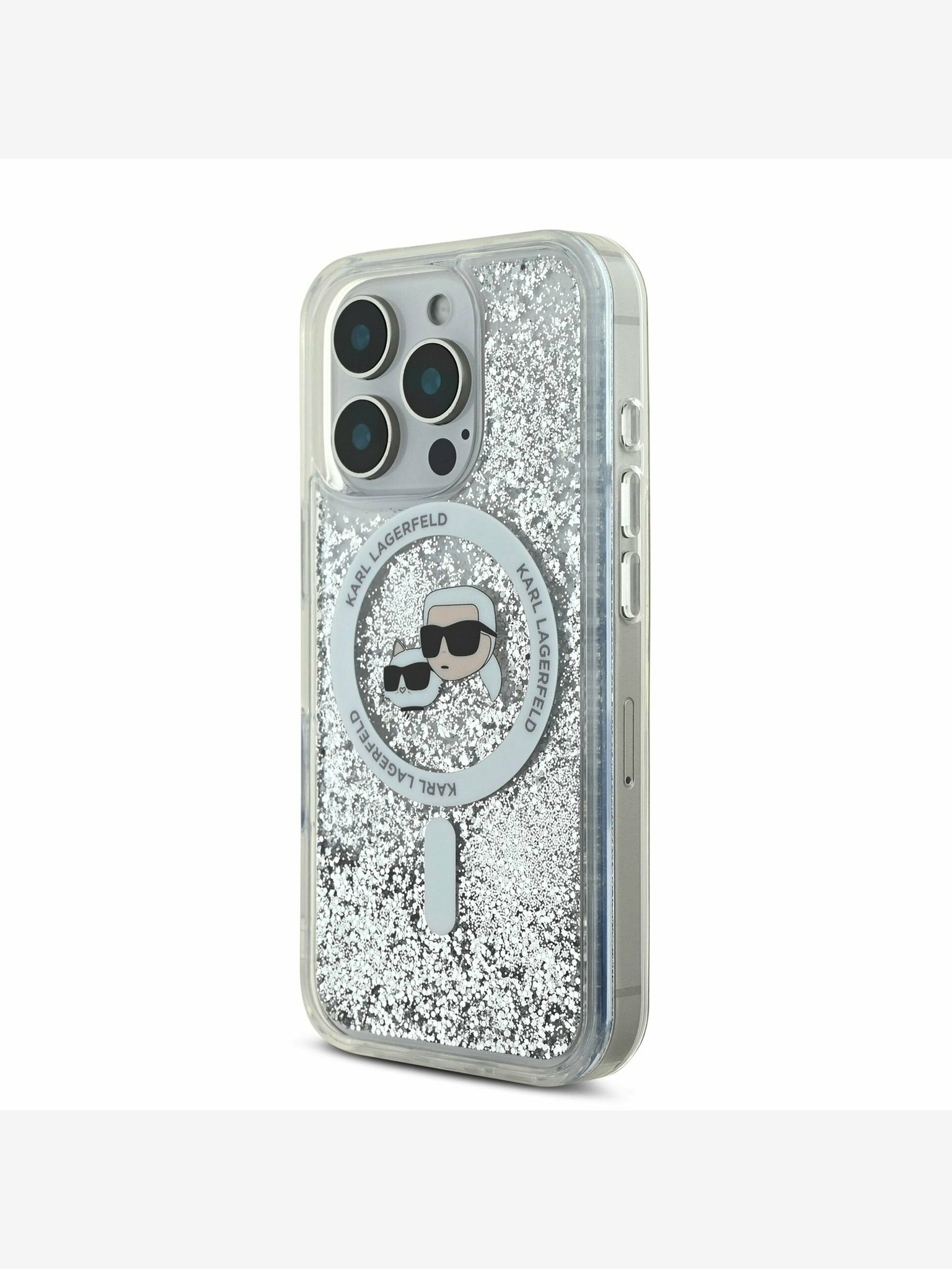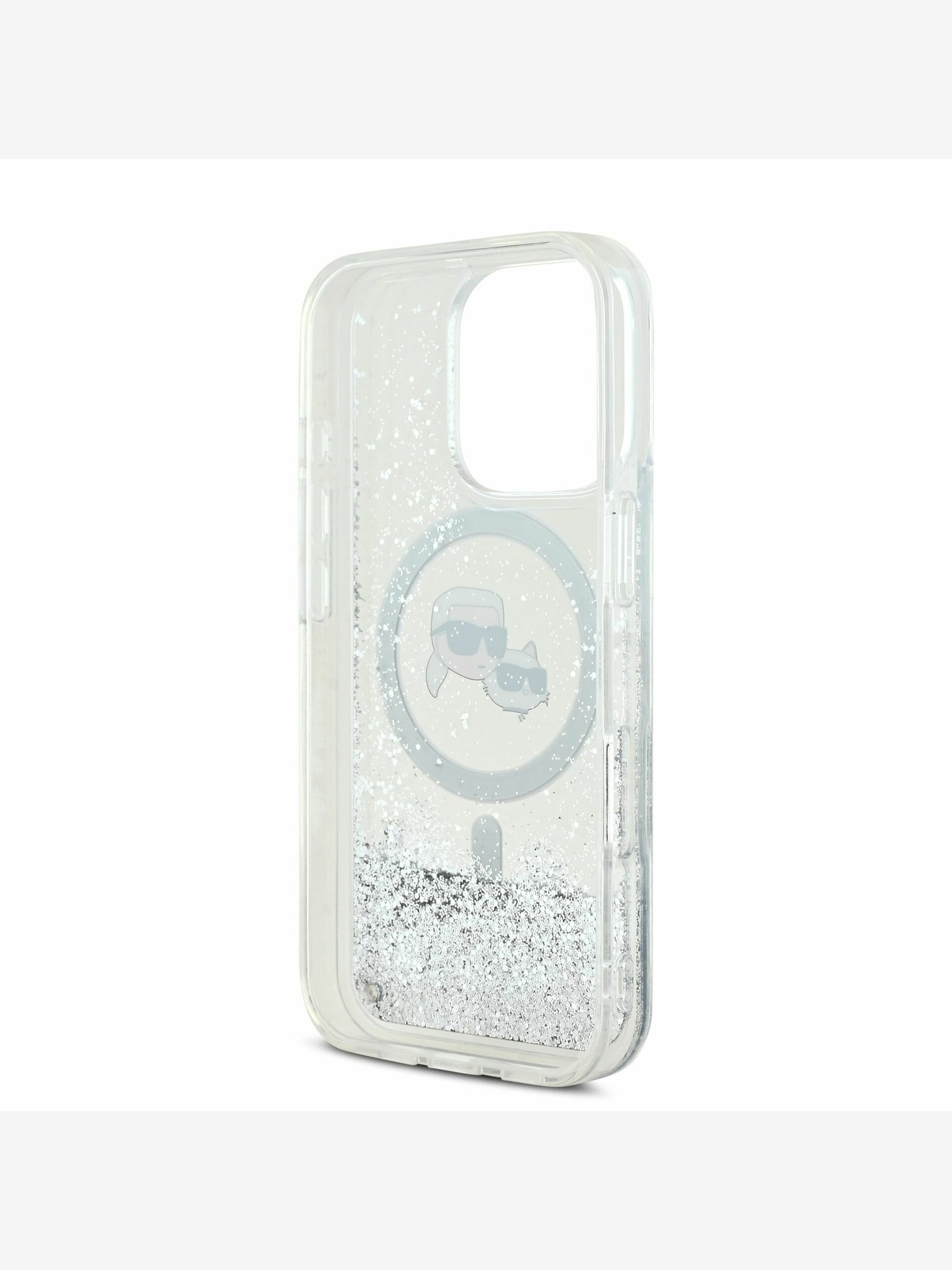 Karl Lagerfeld IML Glitter Karl and Choupette Sketch MagSafe Stražnji poklopac za iPhone 16 Pro prozirni