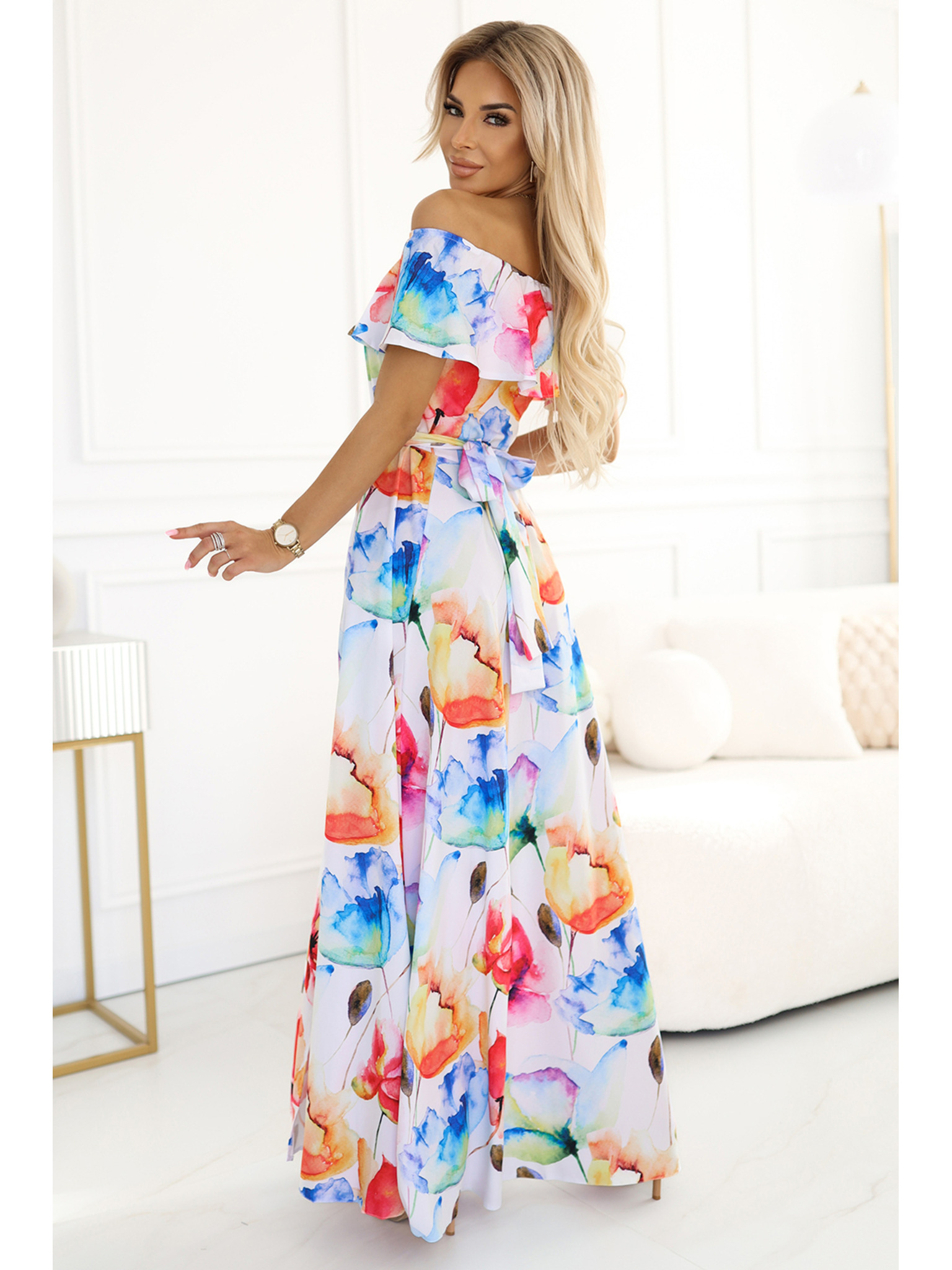 Haljina s širokim izrezom, rukavima i Numoco remenom
