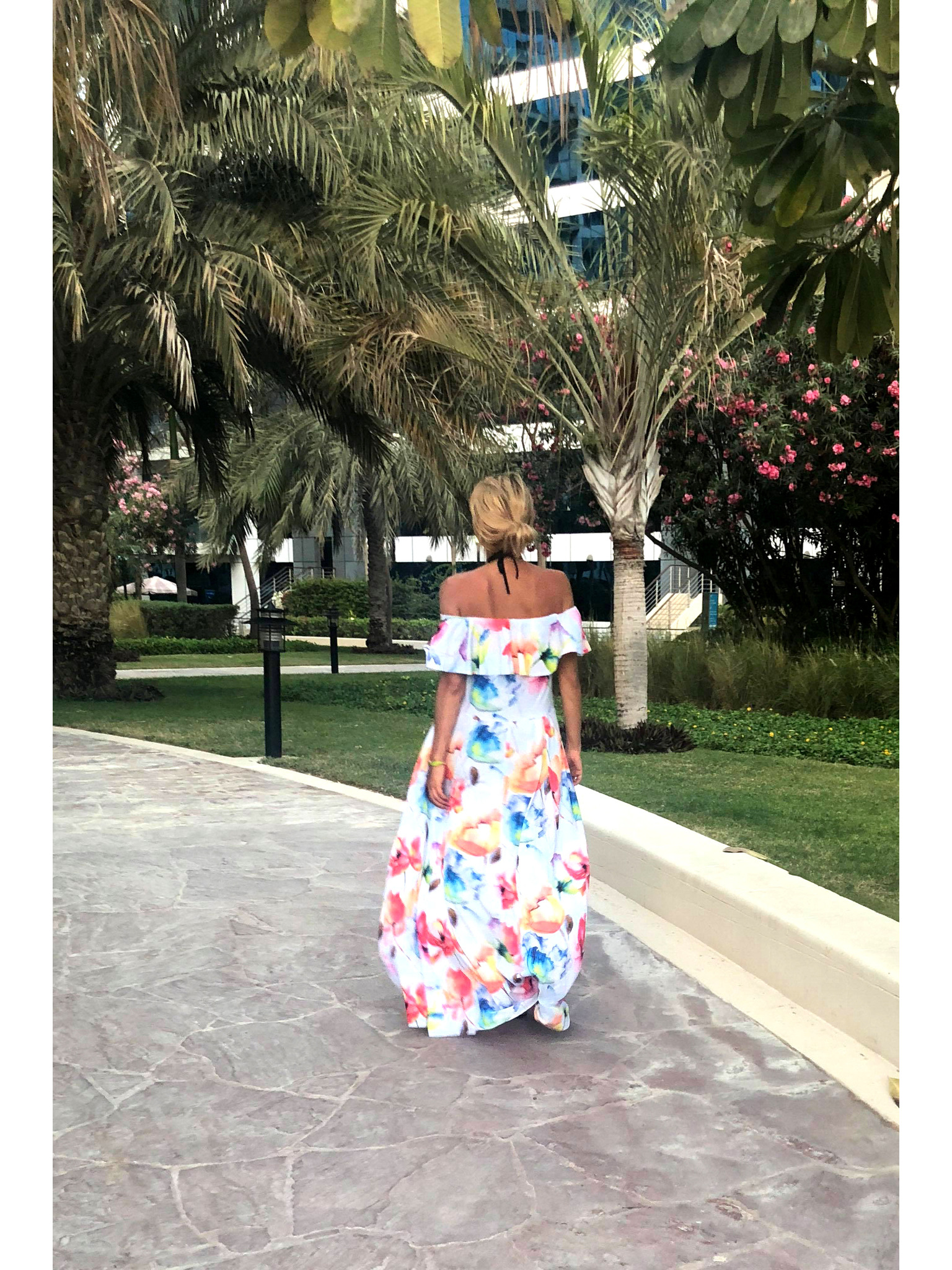 Sportska haljina s džepovima i vezama - bež cvjetovi Numoco