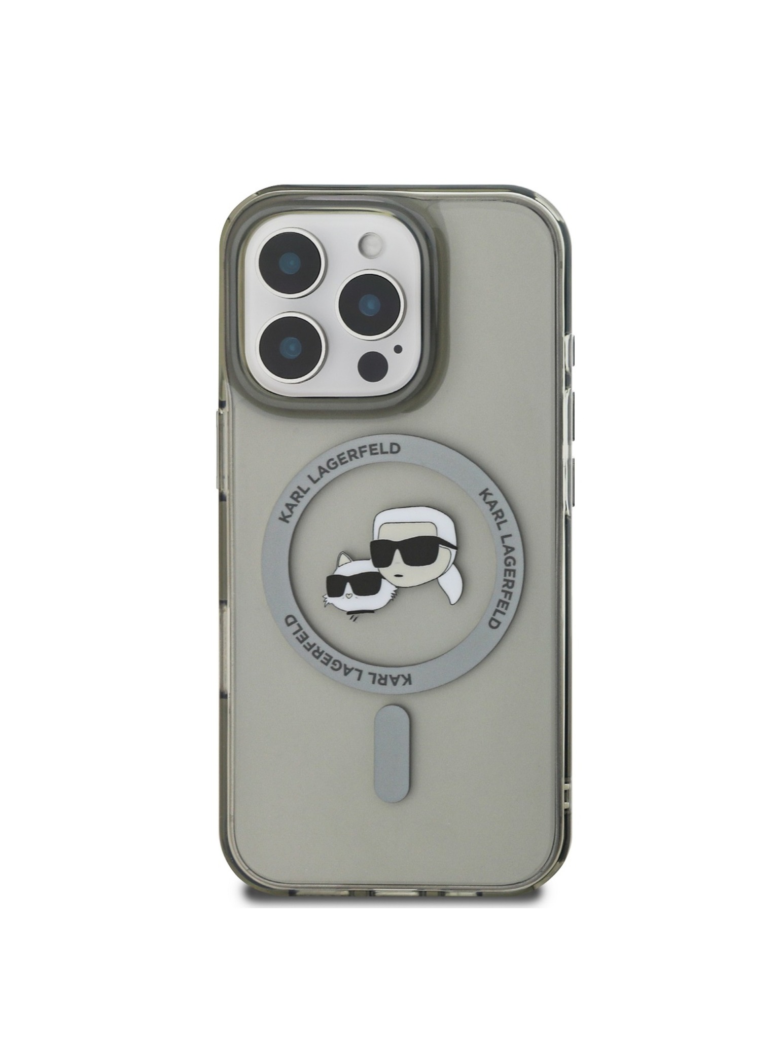 Karl Lagerfeld IML K&CH Heads Repeated Logo MagSafe Stražnji poklopac za iPhone 15 Pro crni