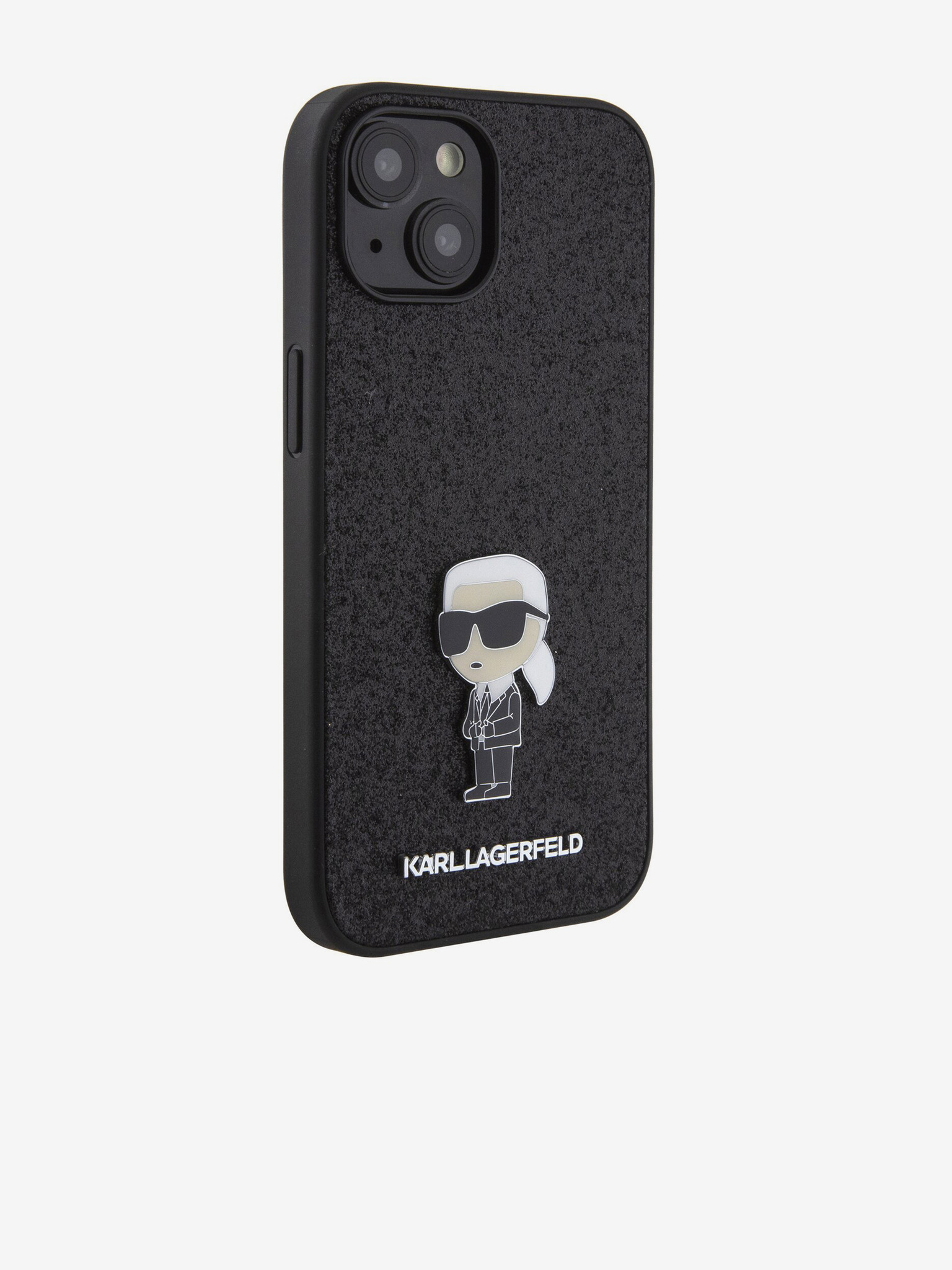 Karl Lagerfeld Fixed Glitter Metal K&CH stražnji poklopac za iPhone 16e Crni