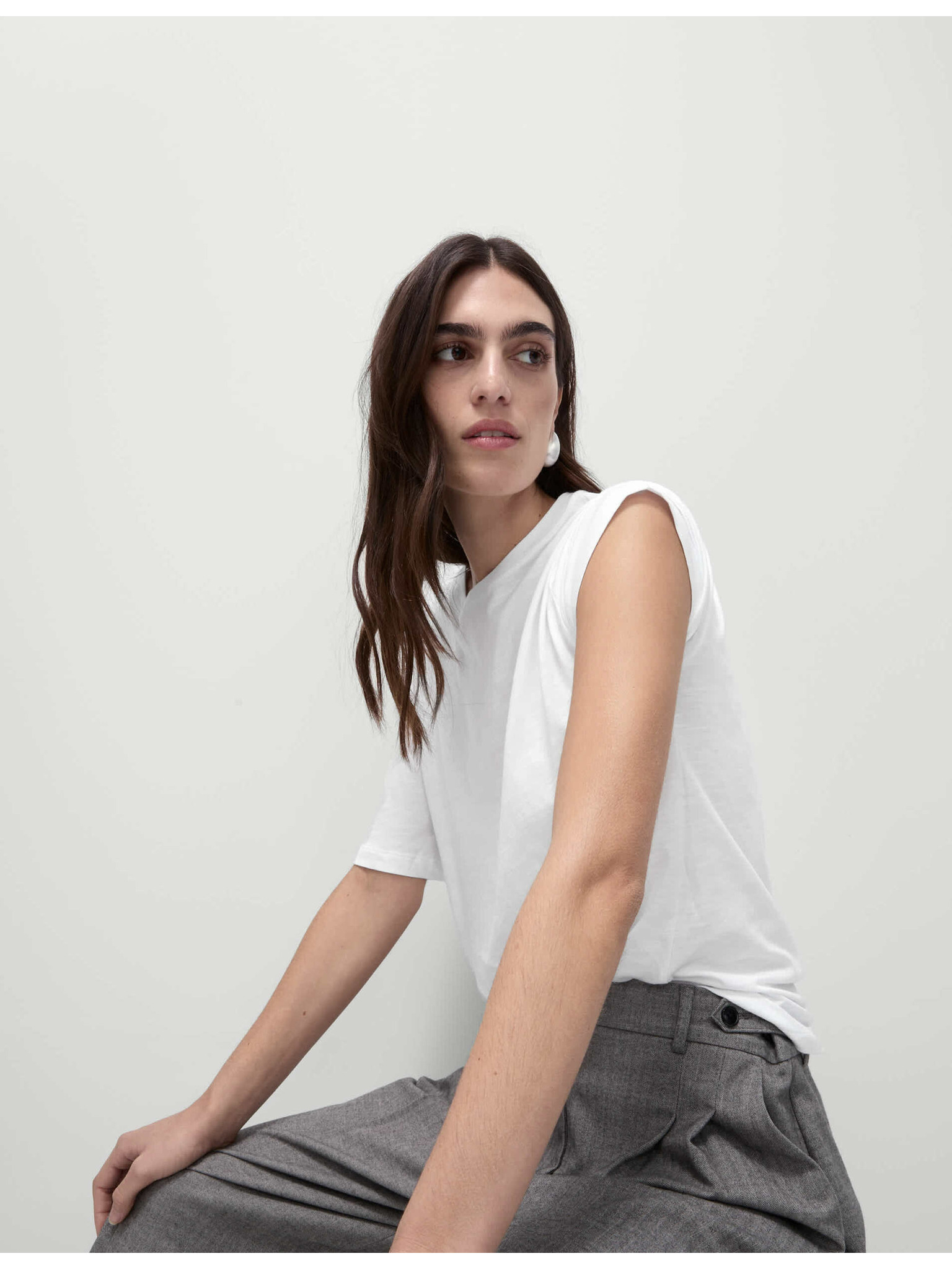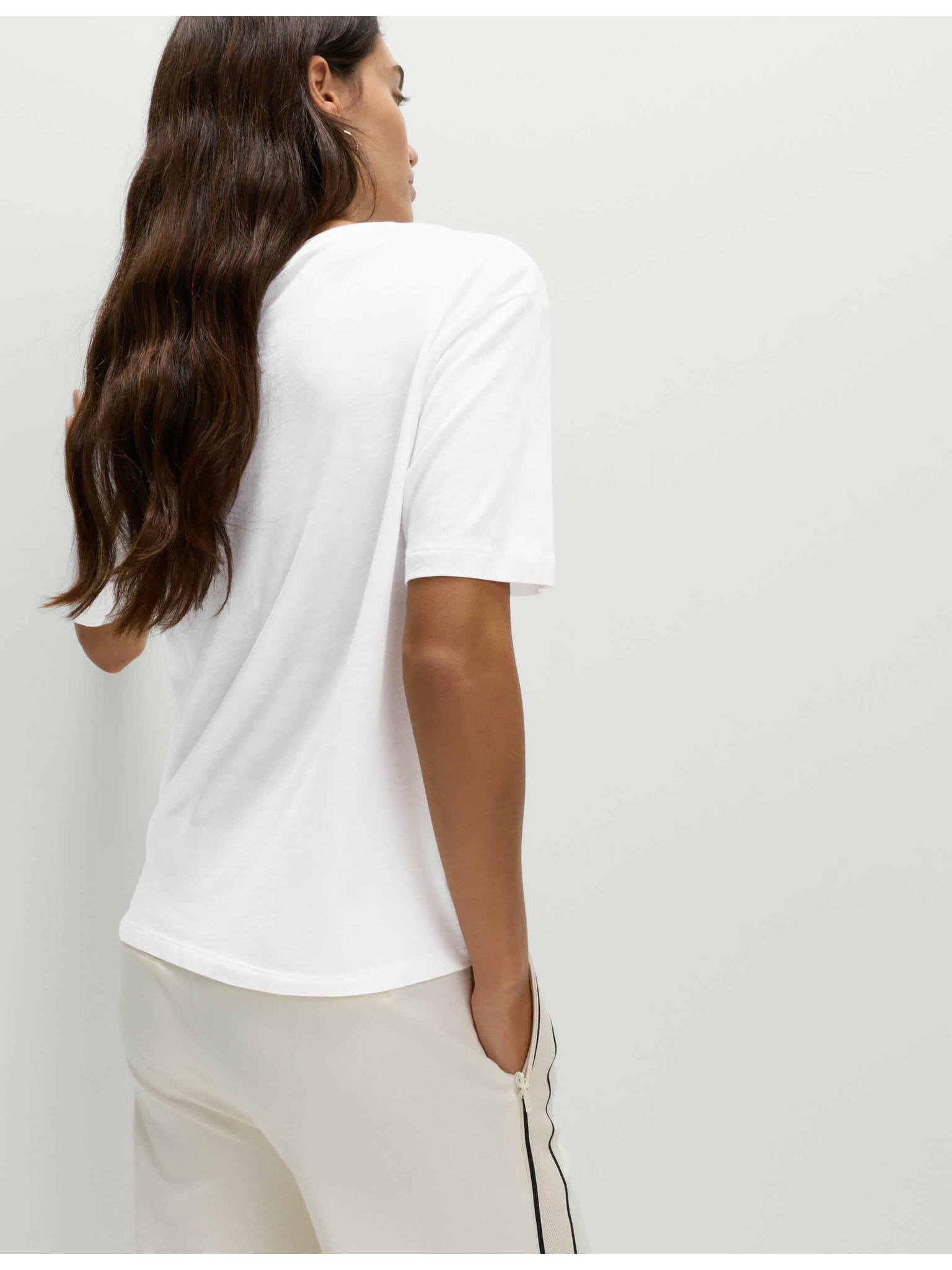 Marks & Spencer bijela uska rebrasta visoka pamučna majica kratkih rukava