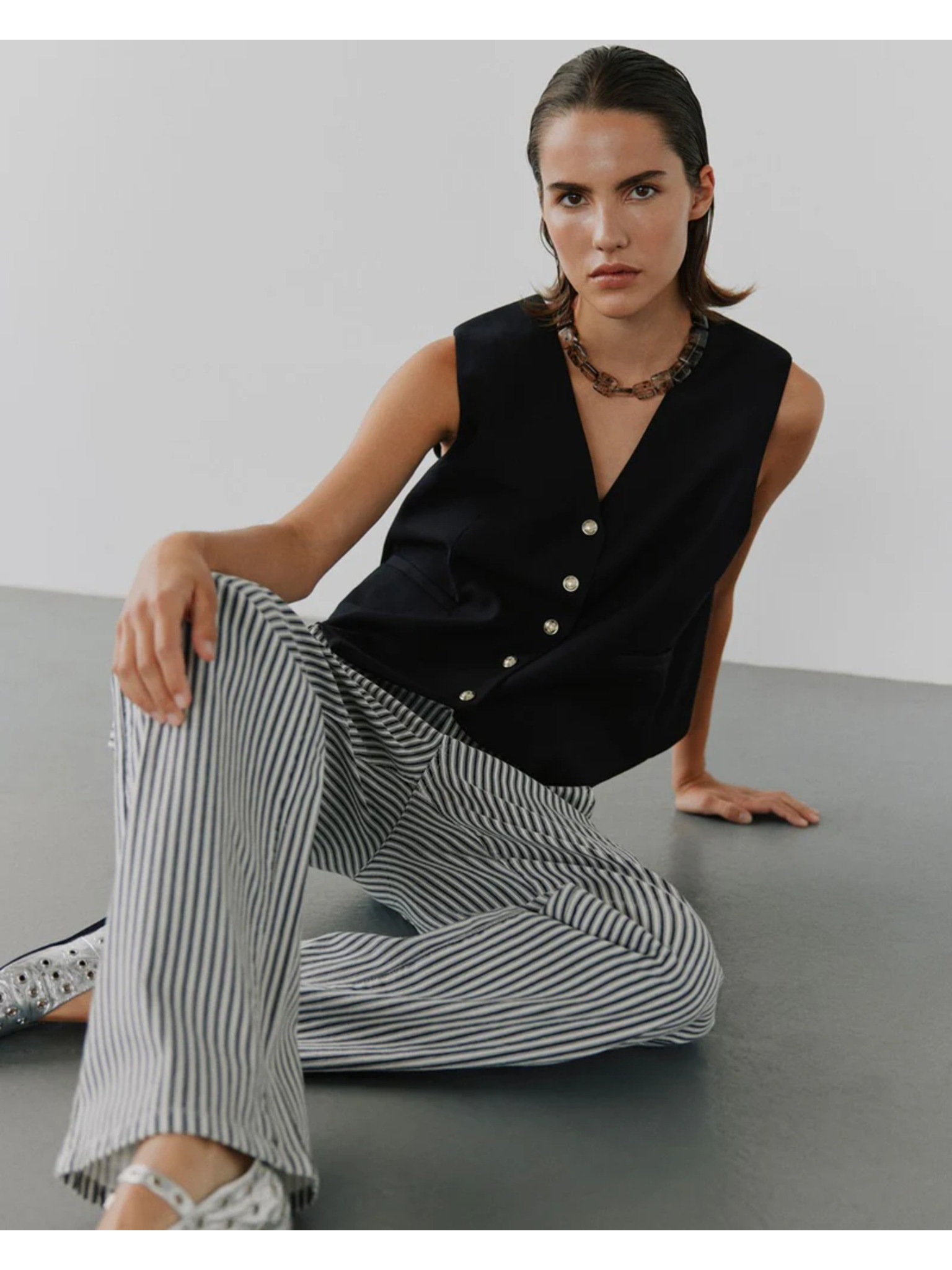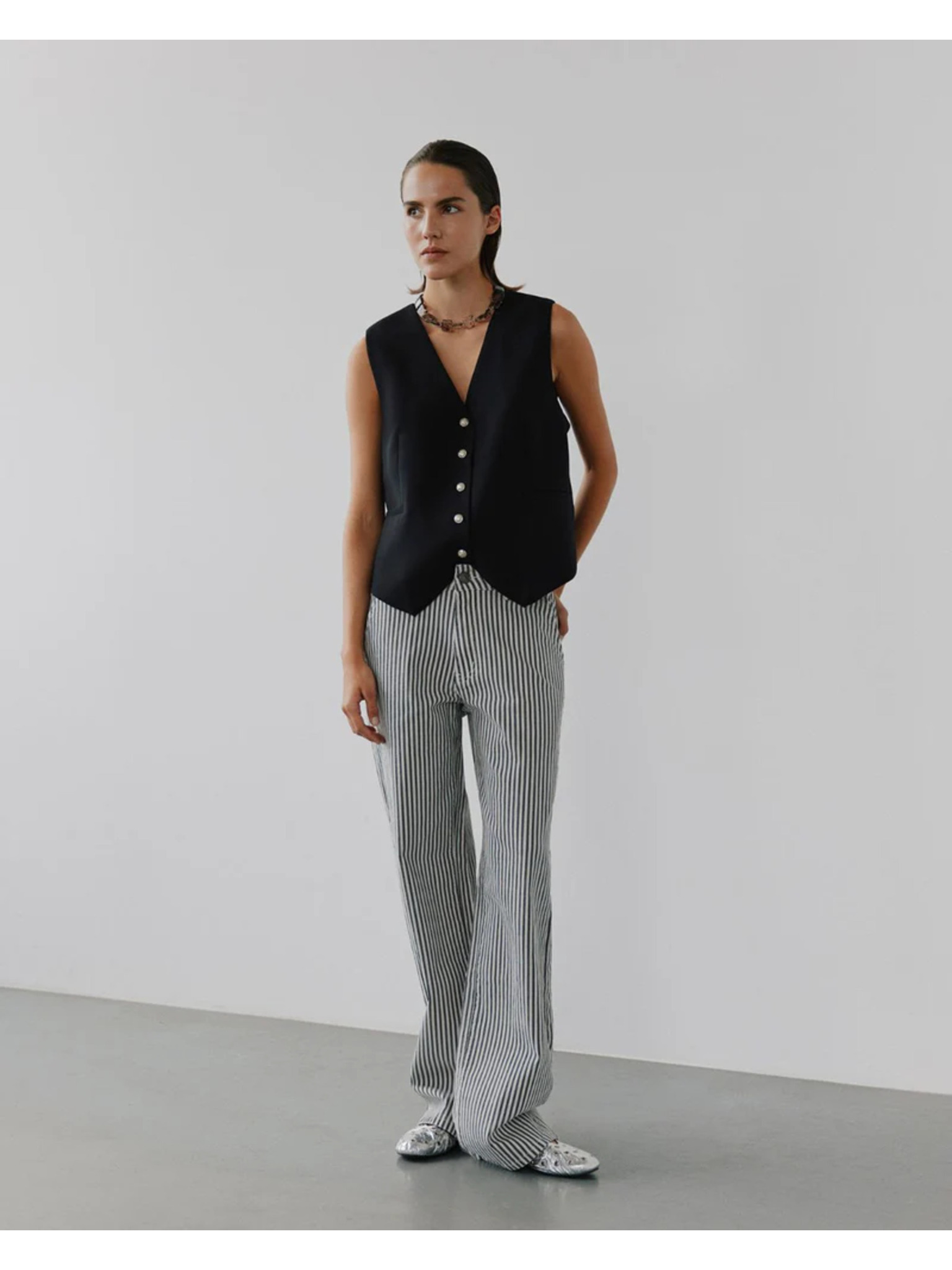 Bijelo-crne ženske široke hlače na pruge od Sofie Schnoor