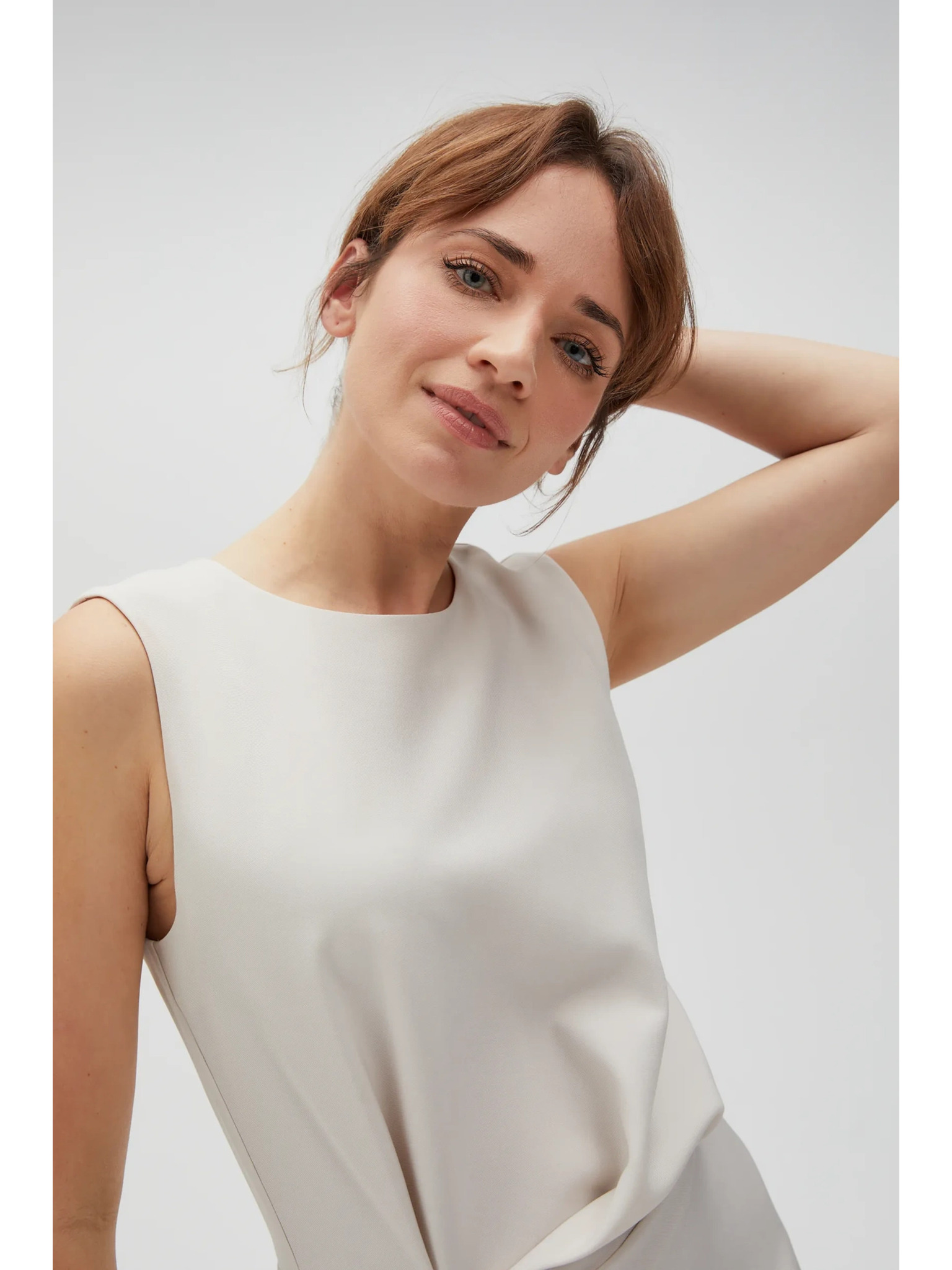 Krojena haljina s širokim izrezom i dugim rukavima - bež boje Numoco