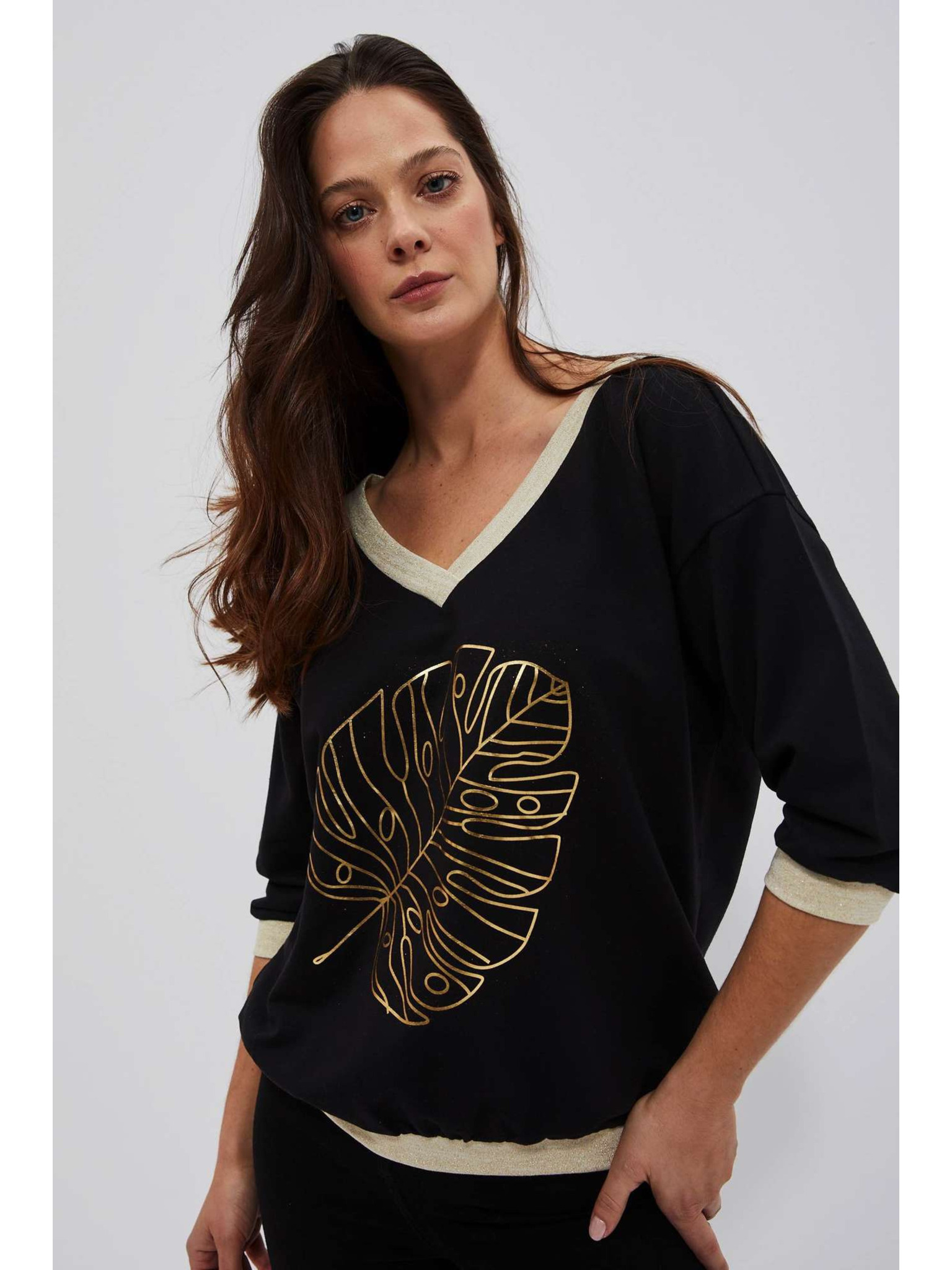 Crni šljokasti top s dugim rukavima