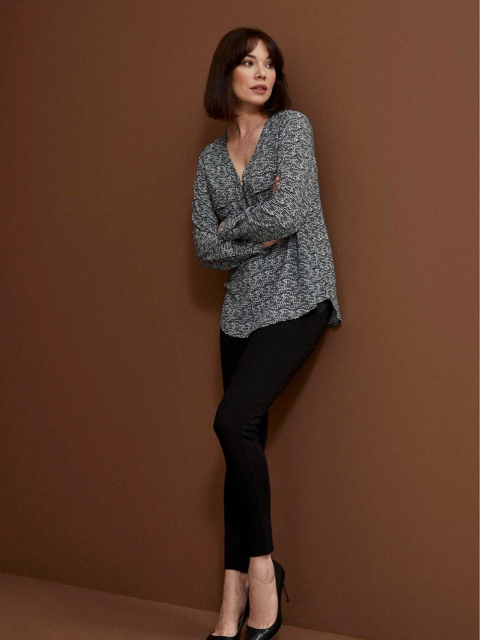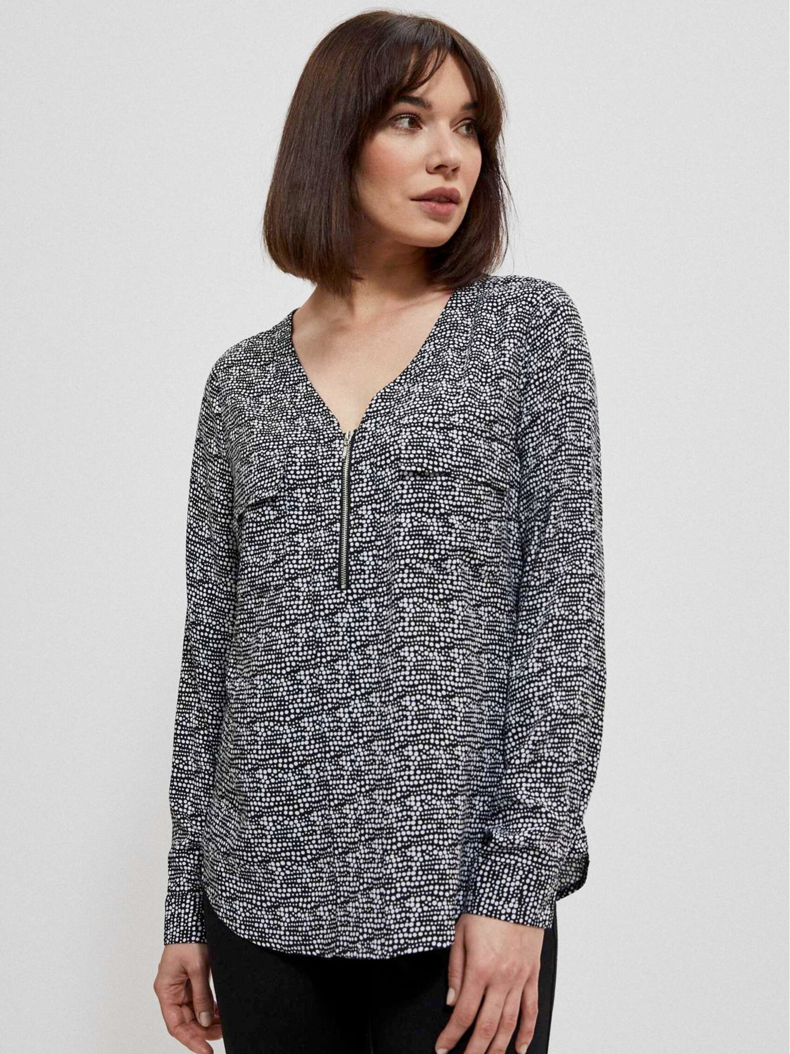Bijelo-crna ženska Moodo bluza s uzorkom