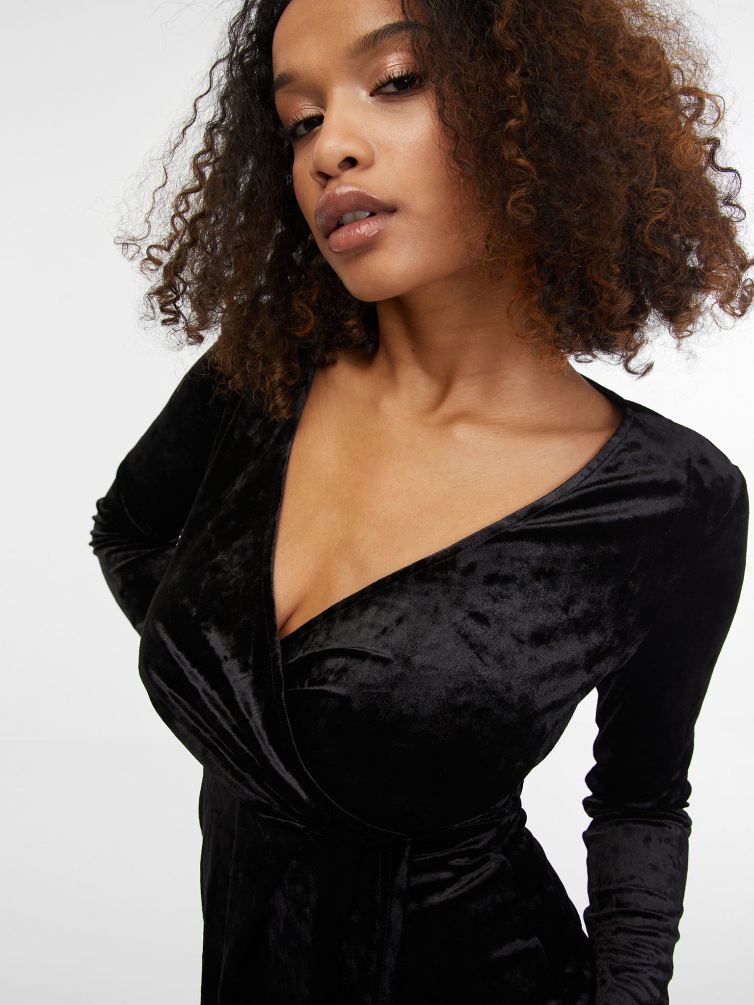 Sjajna duga haljina s dekolteom i dugim rukavima - crna Numoco NELA