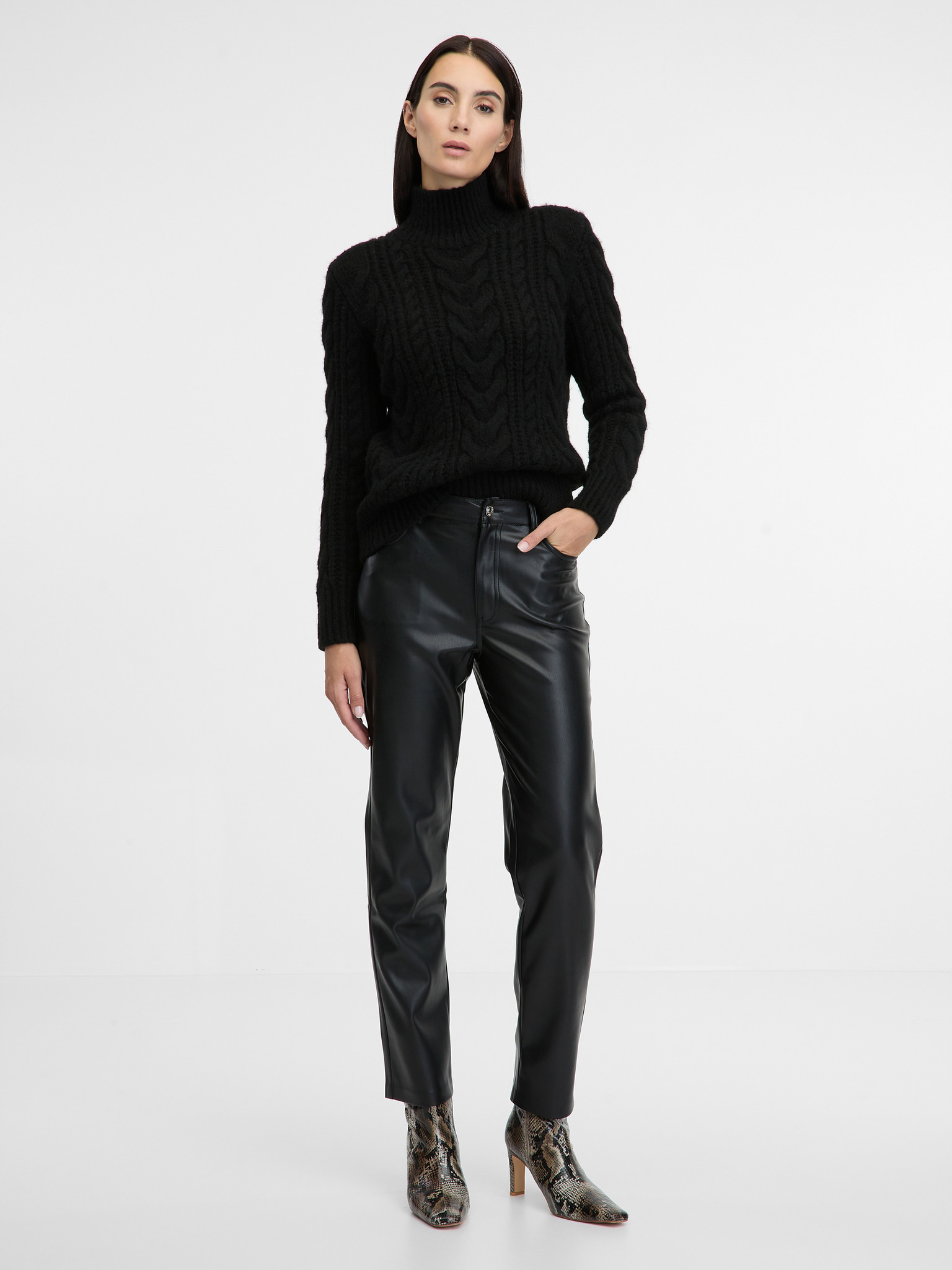 Smeđe ženske hlače od umjetne kože ORSAY