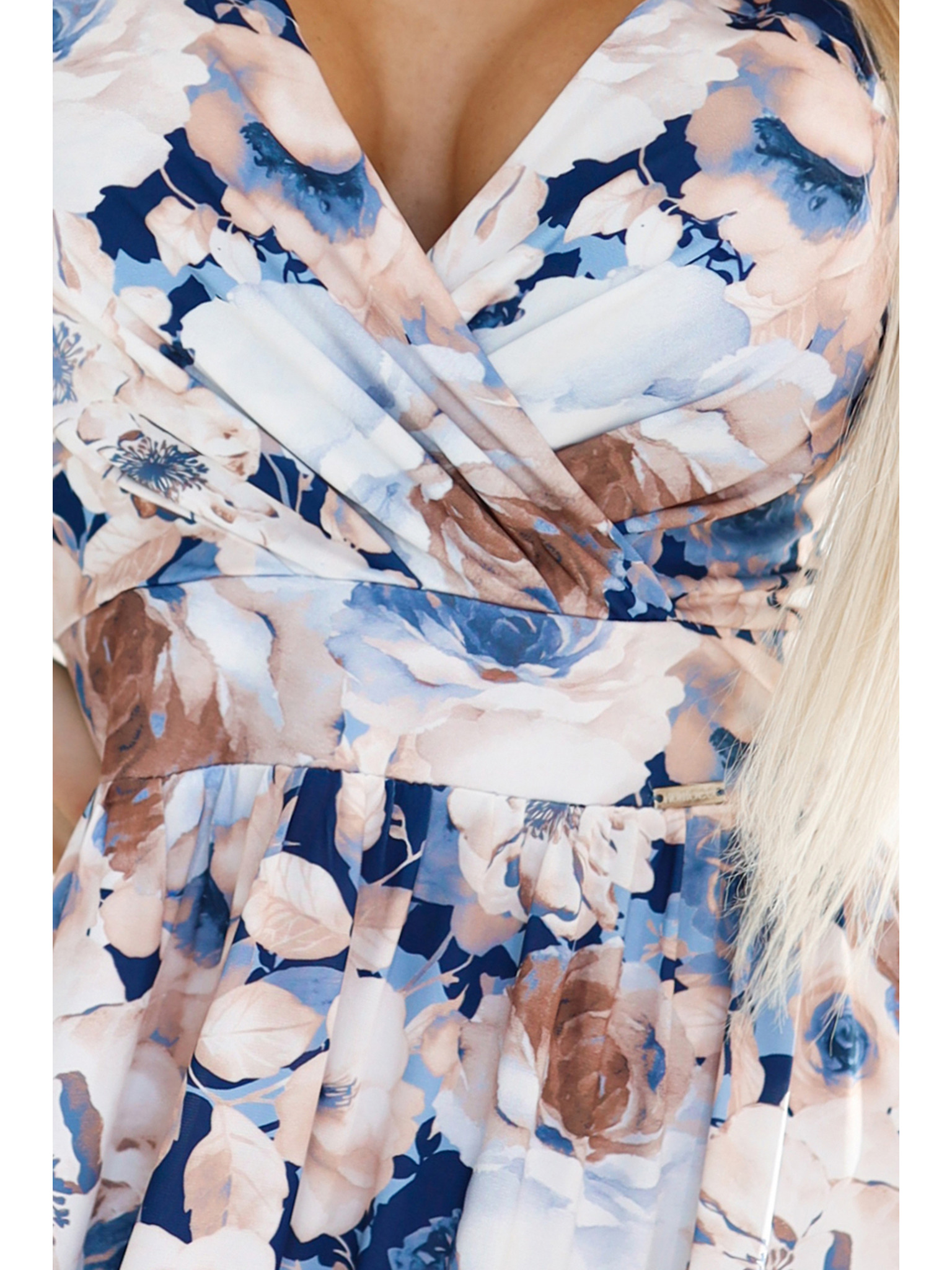 Haljina - srce dekoltea - tamno plava sa ružičastim Numoco listićima